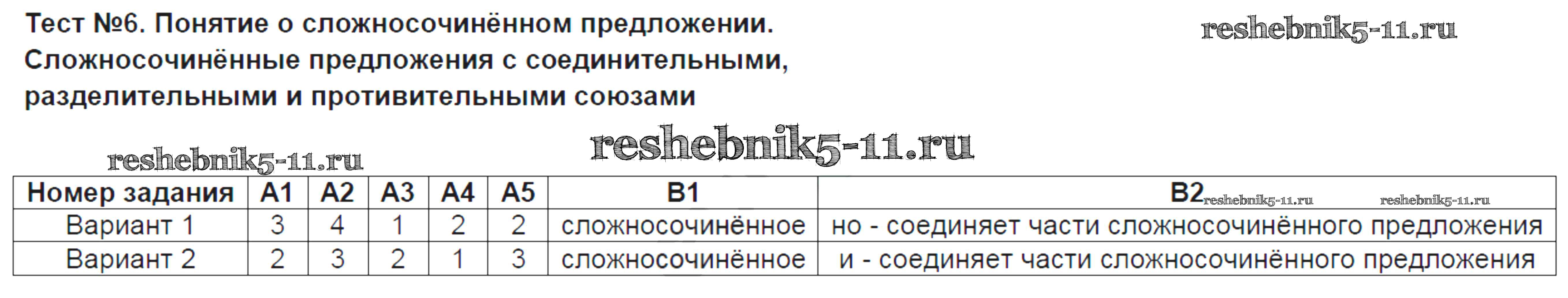 Готовая домашняя работа с ответами по Русскому языку за 9 класс Никулина Контрольно-измерительные материалы (КИМ) Экзамен 2014 ФГОС - Тесты 6