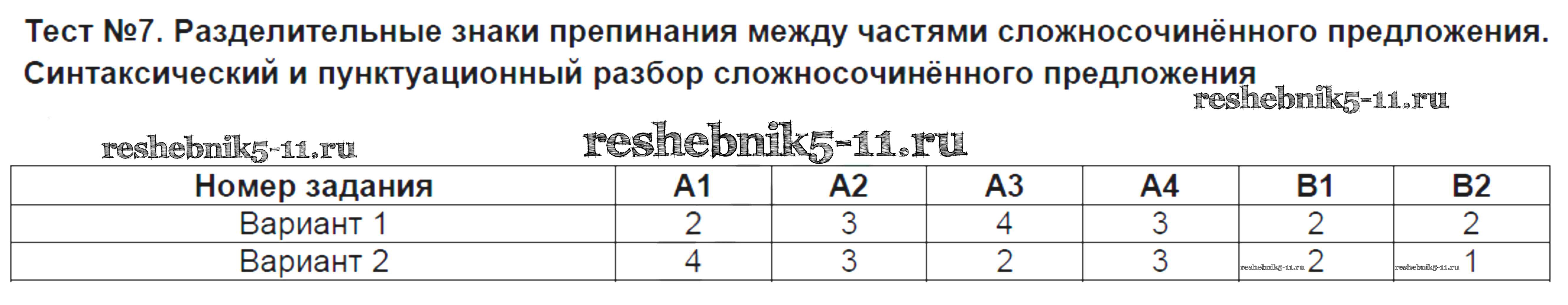 Готовая домашняя работа с ответами по Русскому языку за 9 класс Никулина Контрольно-измерительные материалы (КИМ) Экзамен 2014 ФГОС - Тесты 7