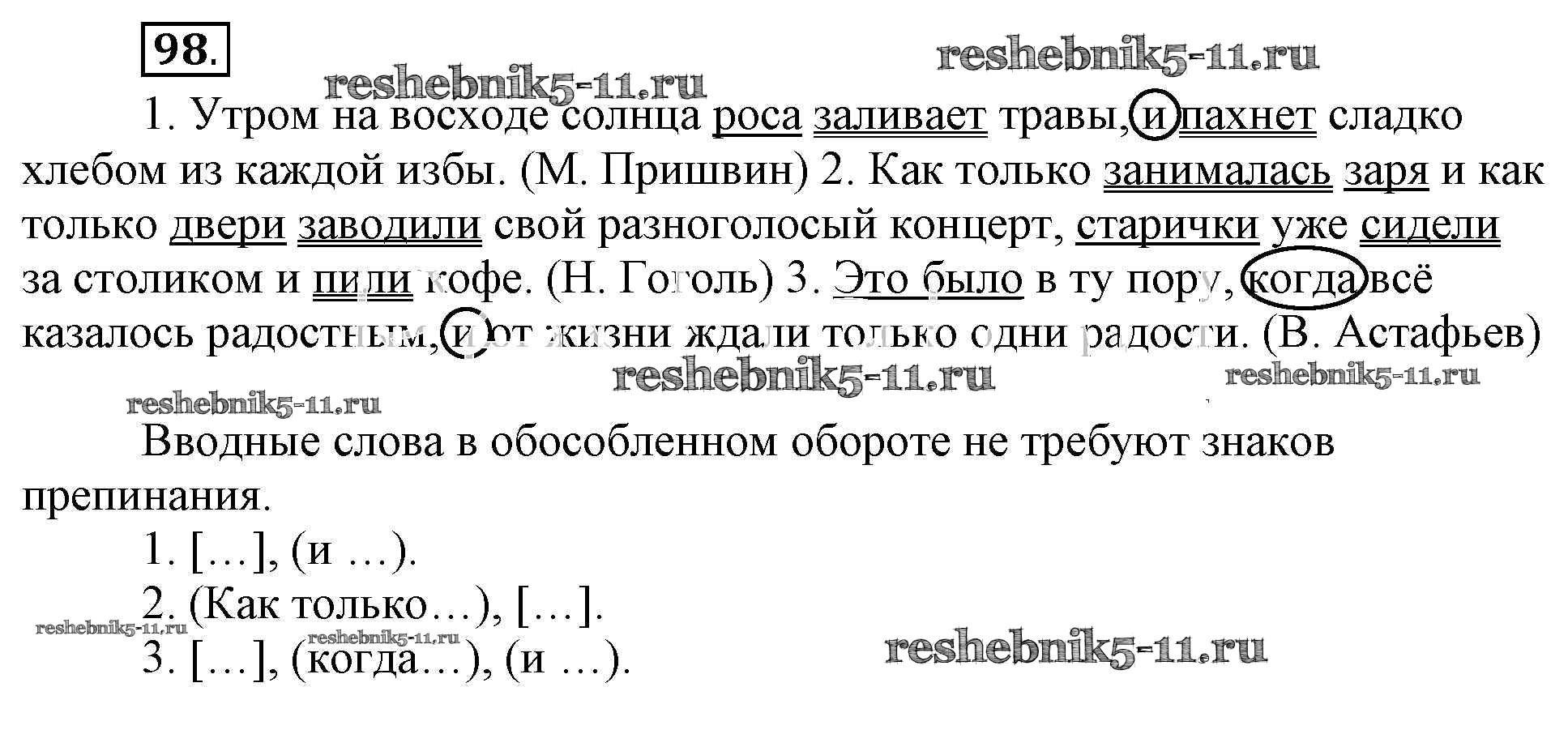 Готовая домашняя работа с ответами по Русскому языку за 9 класс Ефремова Рабочая тетрадь УМК Просвещение 2017 ФГОС - Упражнения 98