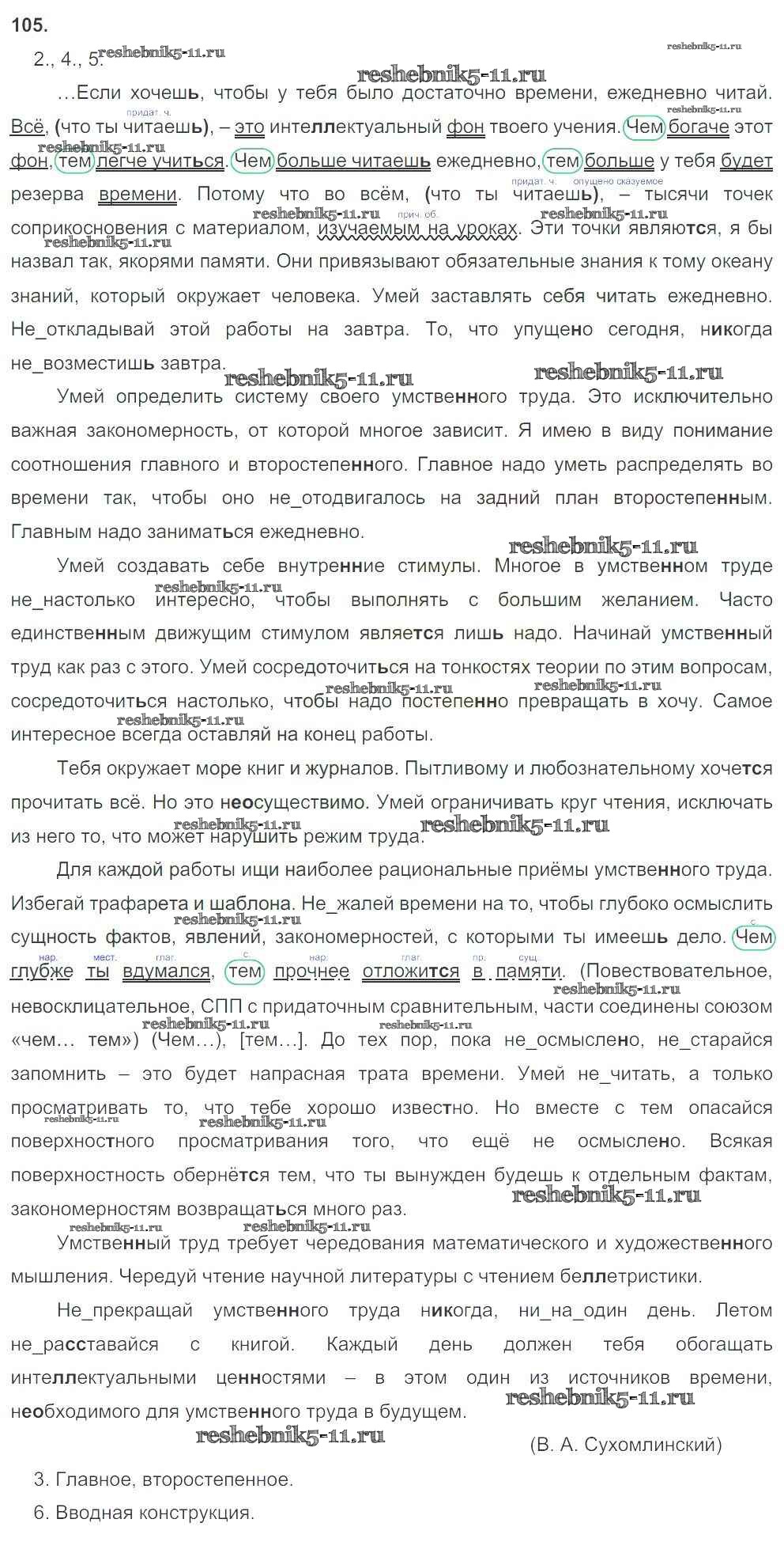 Готовая домашняя работа с ответами по Русскому языку за 9 класс Литвинова Рабочая тетрадь Вертикаль Дрофа 2016 ФГОС - Упражнения 105