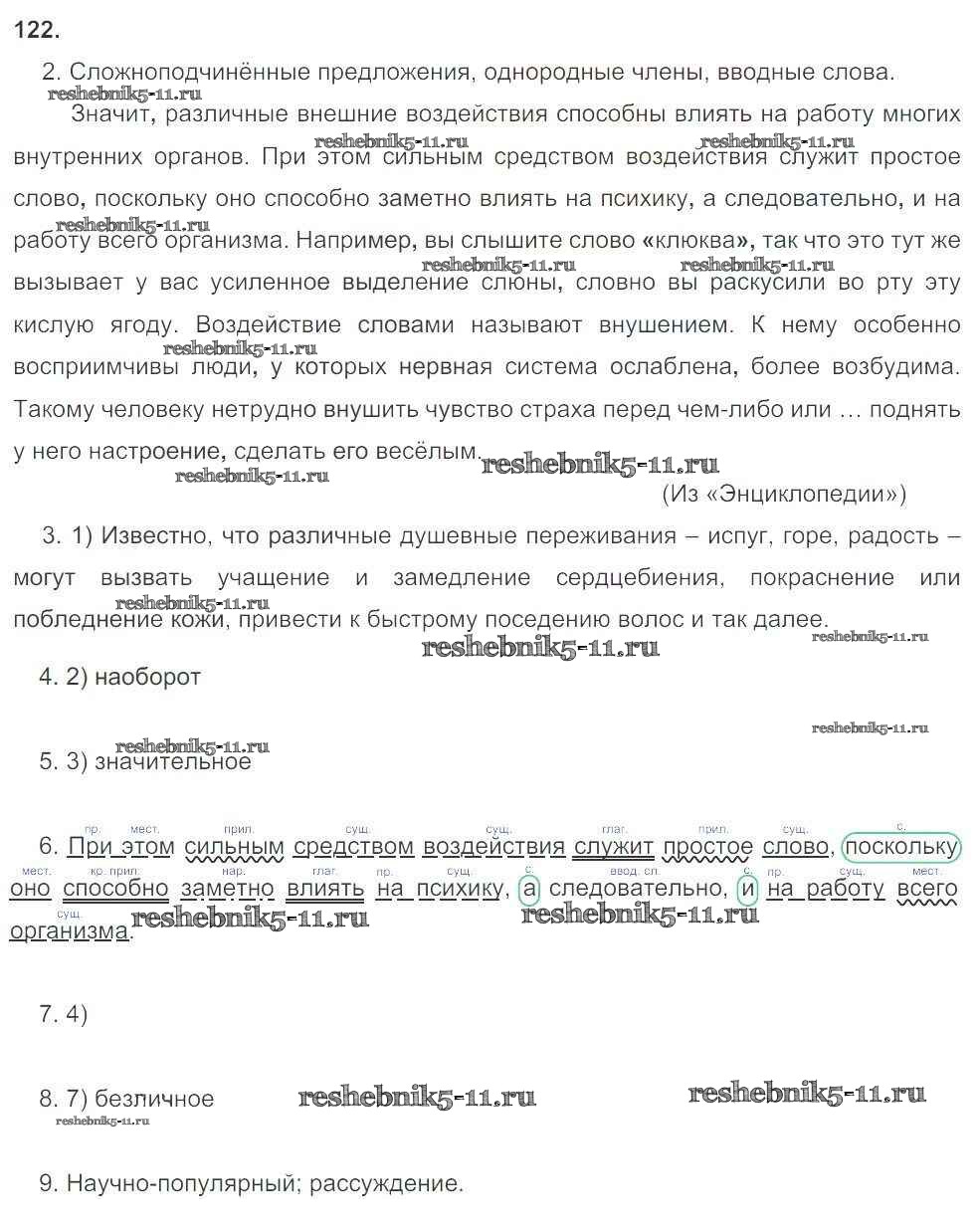 Готовая домашняя работа с ответами по Русскому языку за 9 класс Литвинова Рабочая тетрадь Вертикаль Дрофа 2016 ФГОС - Упражнения 122