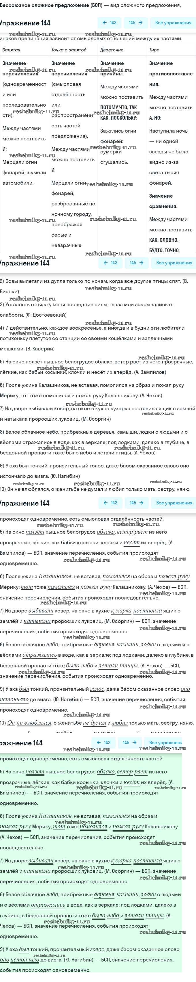 Готовая домашняя работа с ответами по Русскому языку за 9 класс Литвинова Рабочая тетрадь Вертикаль Дрофа 2016 ФГОС - Упражнения 144
