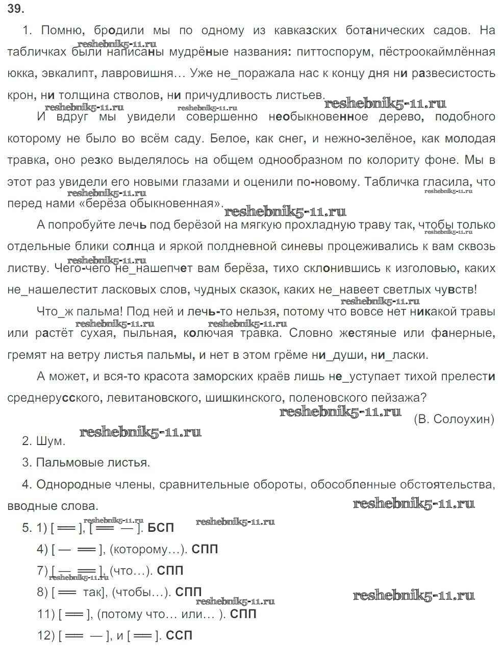 Готовая домашняя работа с ответами по Русскому языку за 9 класс Литвинова Рабочая тетрадь Вертикаль Дрофа 2016 ФГОС - Упражнения 39