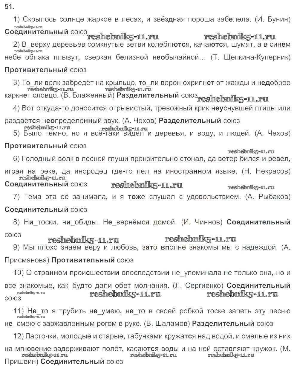 Готовая домашняя работа с ответами по Русскому языку за 9 класс Литвинова Рабочая тетрадь Вертикаль Дрофа 2016 ФГОС - Упражнения 51