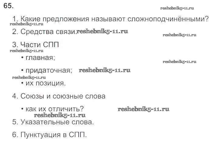 Готовая домашняя работа с ответами по Русскому языку за 9 класс Литвинова Рабочая тетрадь Вертикаль Дрофа 2016 ФГОС - Упражнения 65