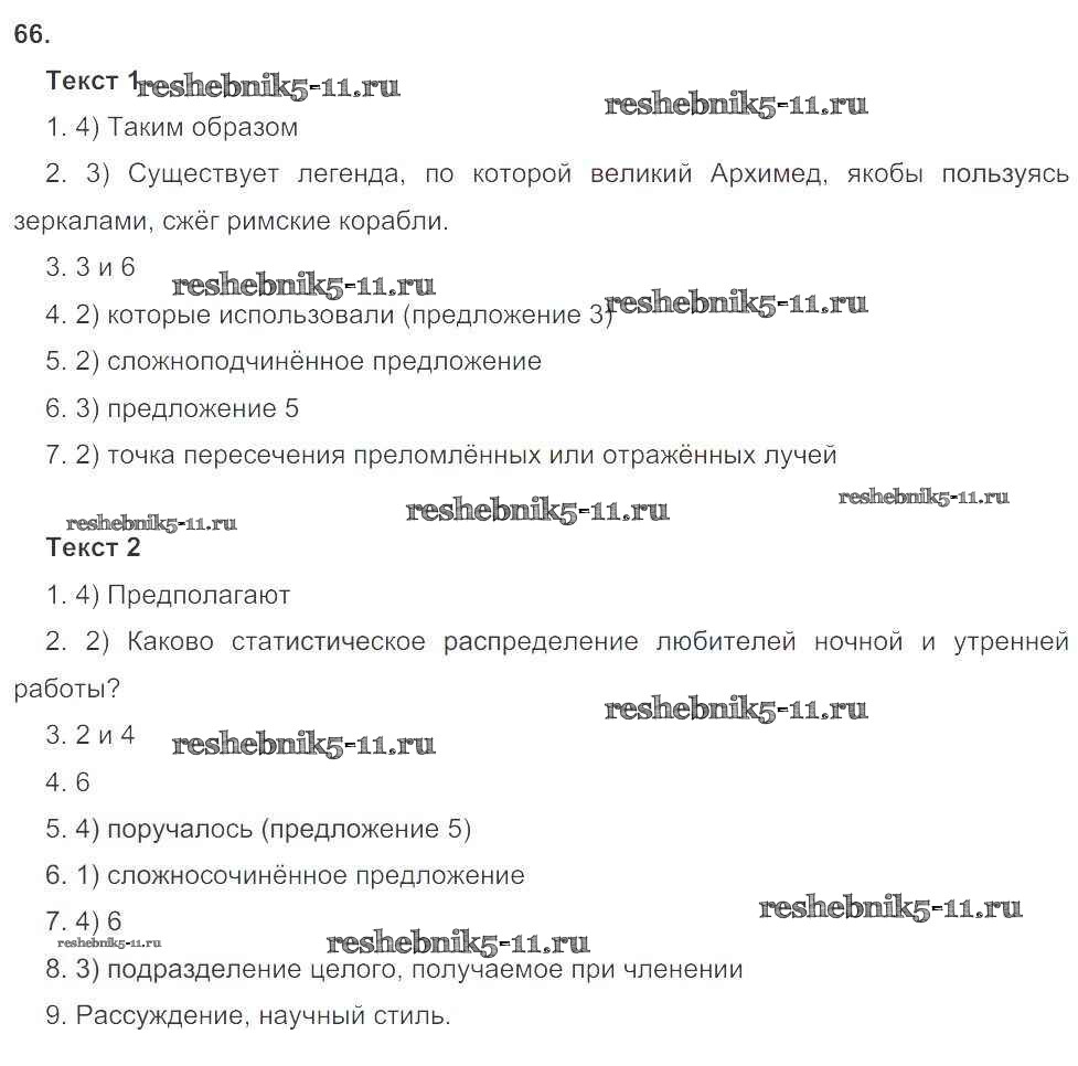 Готовая домашняя работа с ответами по Русскому языку за 9 класс Литвинова Рабочая тетрадь Вертикаль Дрофа 2016 ФГОС - Упражнения 66