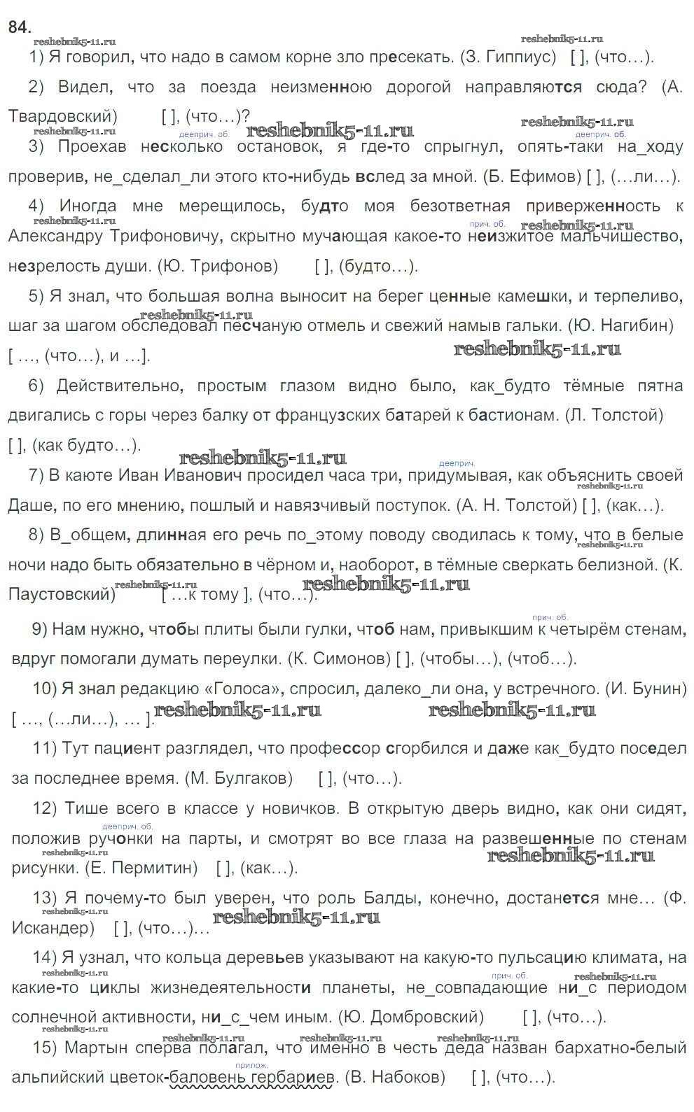 Готовая домашняя работа с ответами по Русскому языку за 9 класс Литвинова Рабочая тетрадь Вертикаль Дрофа 2016 ФГОС - Упражнения 84