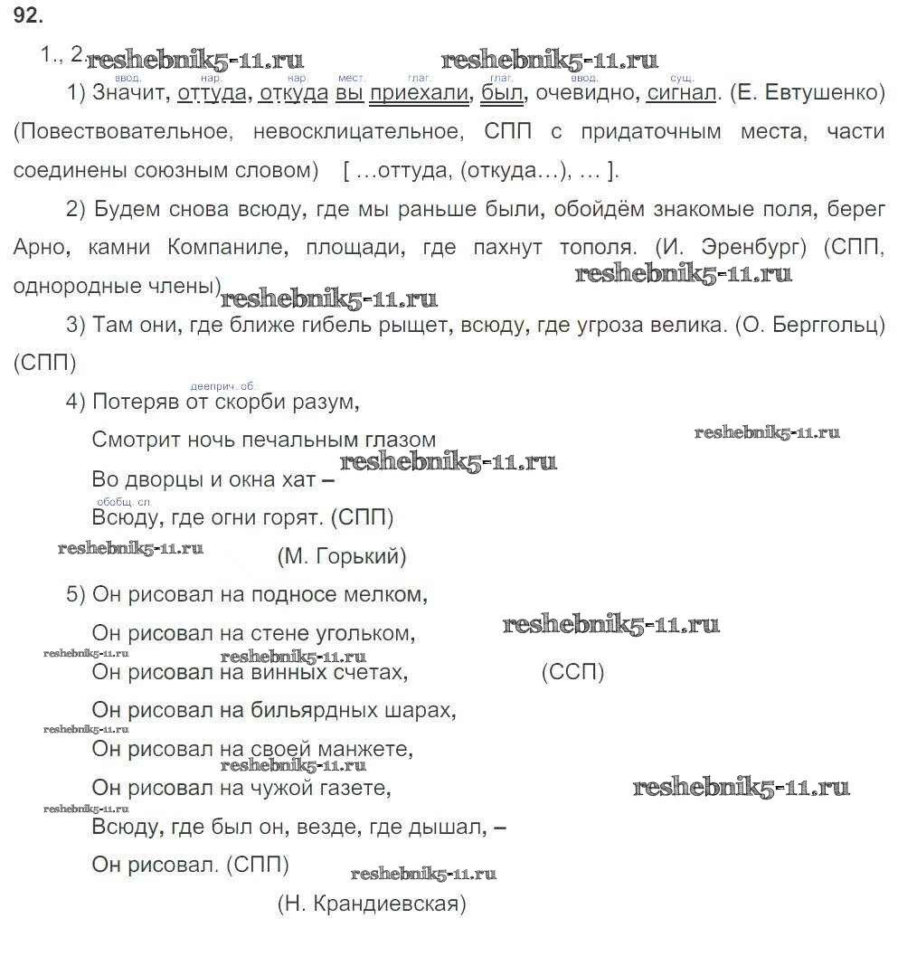 Готовая домашняя работа с ответами по Русскому языку за 9 класс Литвинова Рабочая тетрадь Вертикаль Дрофа 2016 ФГОС - Упражнения 92