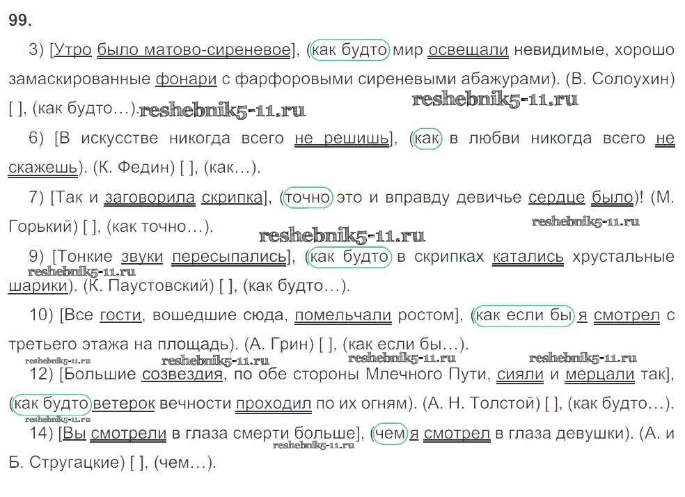 Готовая домашняя работа с ответами по Русскому языку за 9 класс Литвинова Рабочая тетрадь Вертикаль Дрофа 2016 ФГОС - Упражнения 99