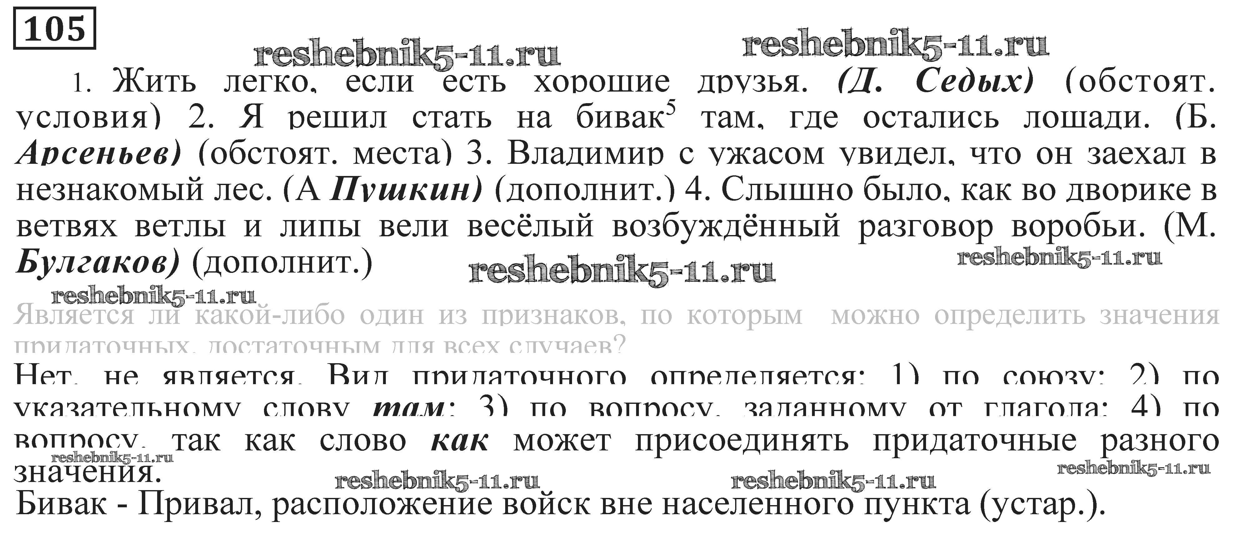 Готовая домашняя работа с ответами по Русскому языку за 9 класс Пичугов, Еремеева, Купалова Практика Просвещение 2022 - Упражнения 105