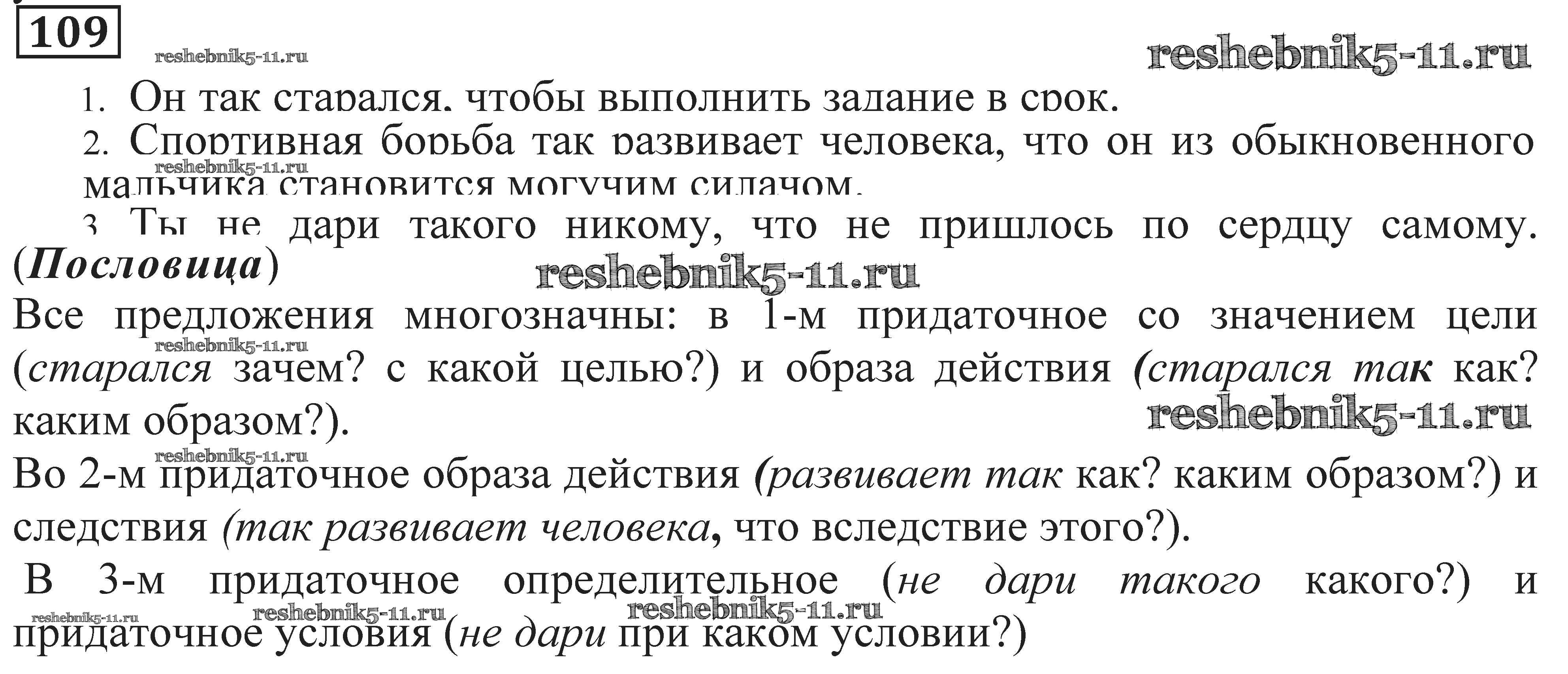 Готовая домашняя работа с ответами по Русскому языку за 9 класс Пичугов, Еремеева, Купалова Практика Просвещение 2022 - Упражнения 109