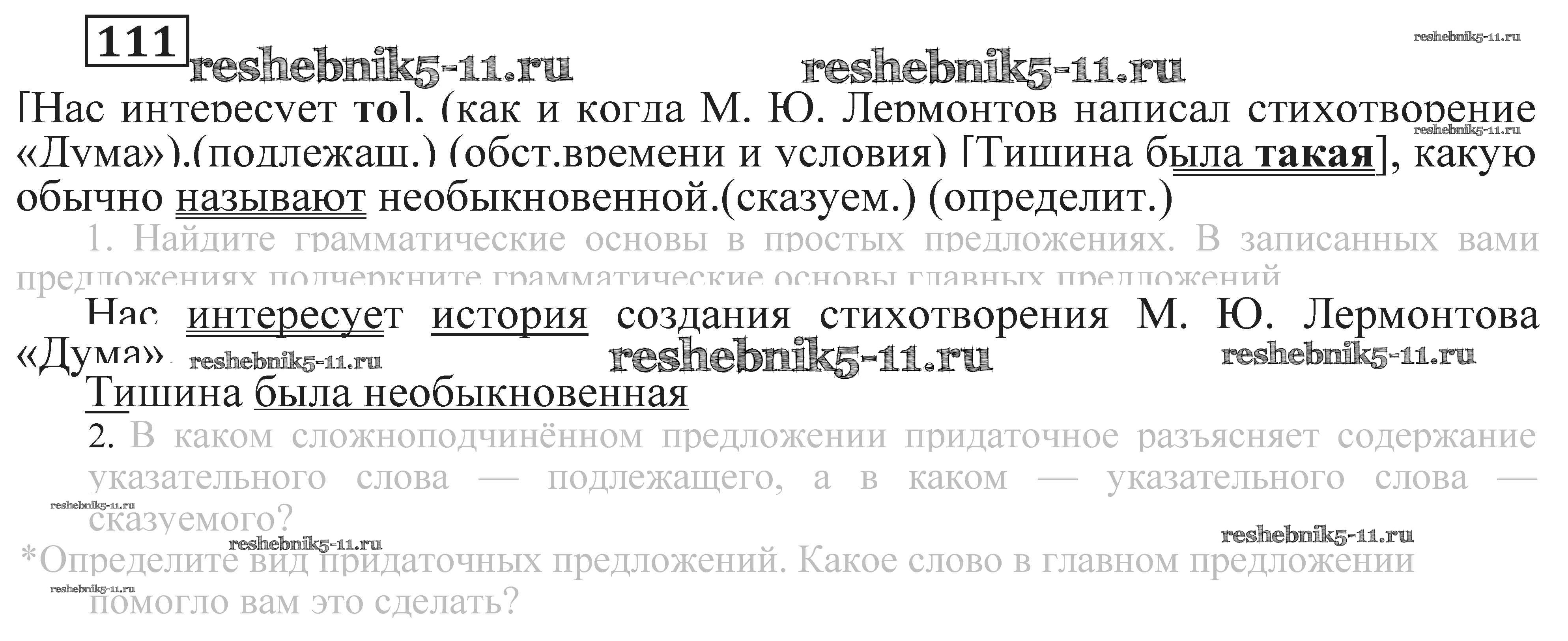 Готовая домашняя работа с ответами по Русскому языку за 9 класс Пичугов, Еремеева, Купалова Практика Просвещение 2022 - Упражнения 111