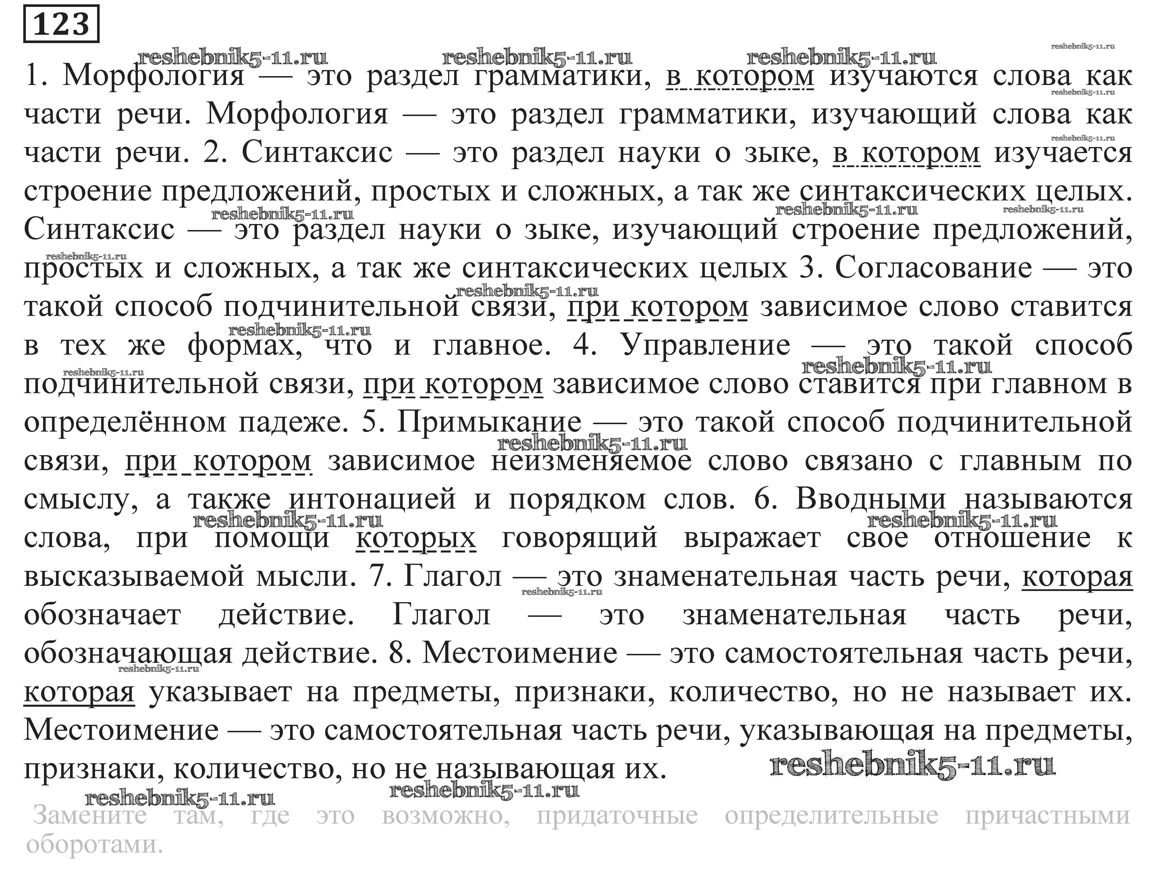 Готовая домашняя работа с ответами по Русскому языку за 9 класс Пичугов, Еремеева, Купалова Практика Просвещение 2022 - Упражнения 123