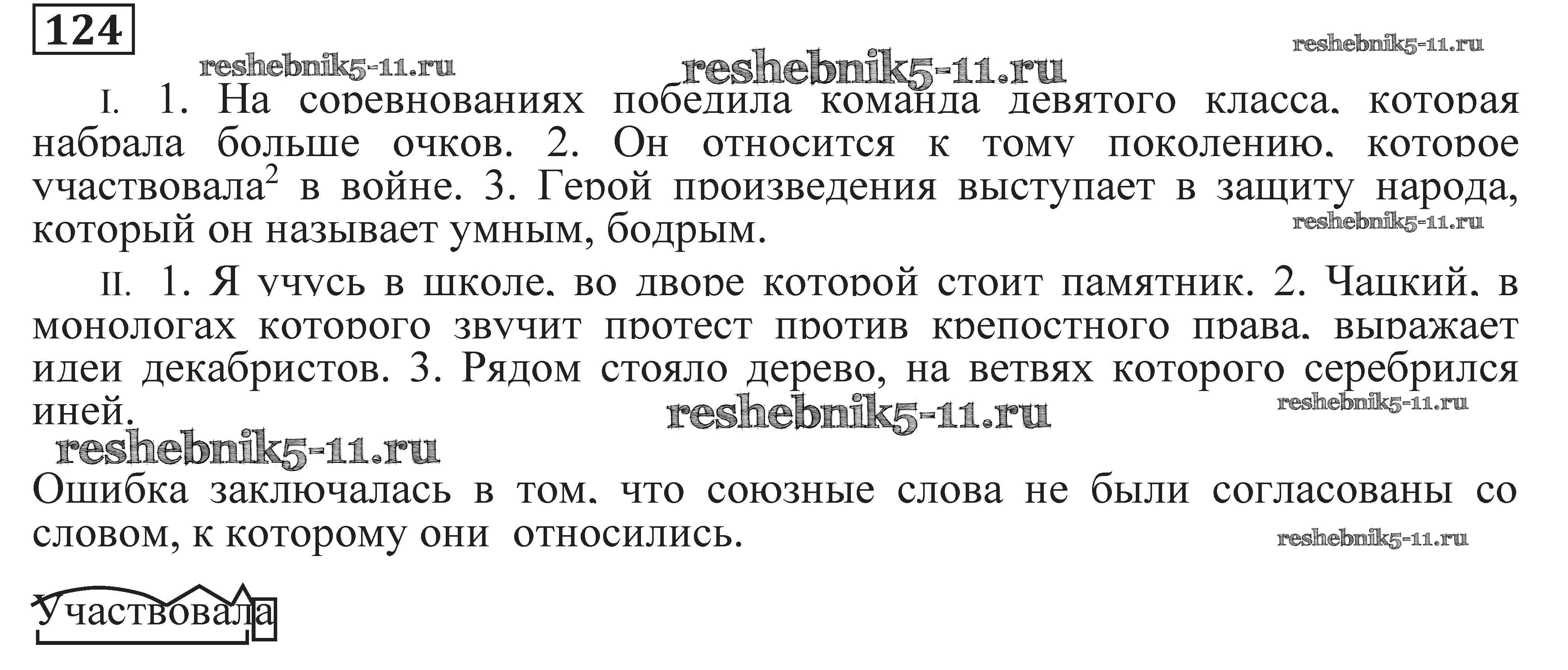 Готовая домашняя работа с ответами по Русскому языку за 9 класс Пичугов, Еремеева, Купалова Практика Просвещение 2022 - Упражнения 124