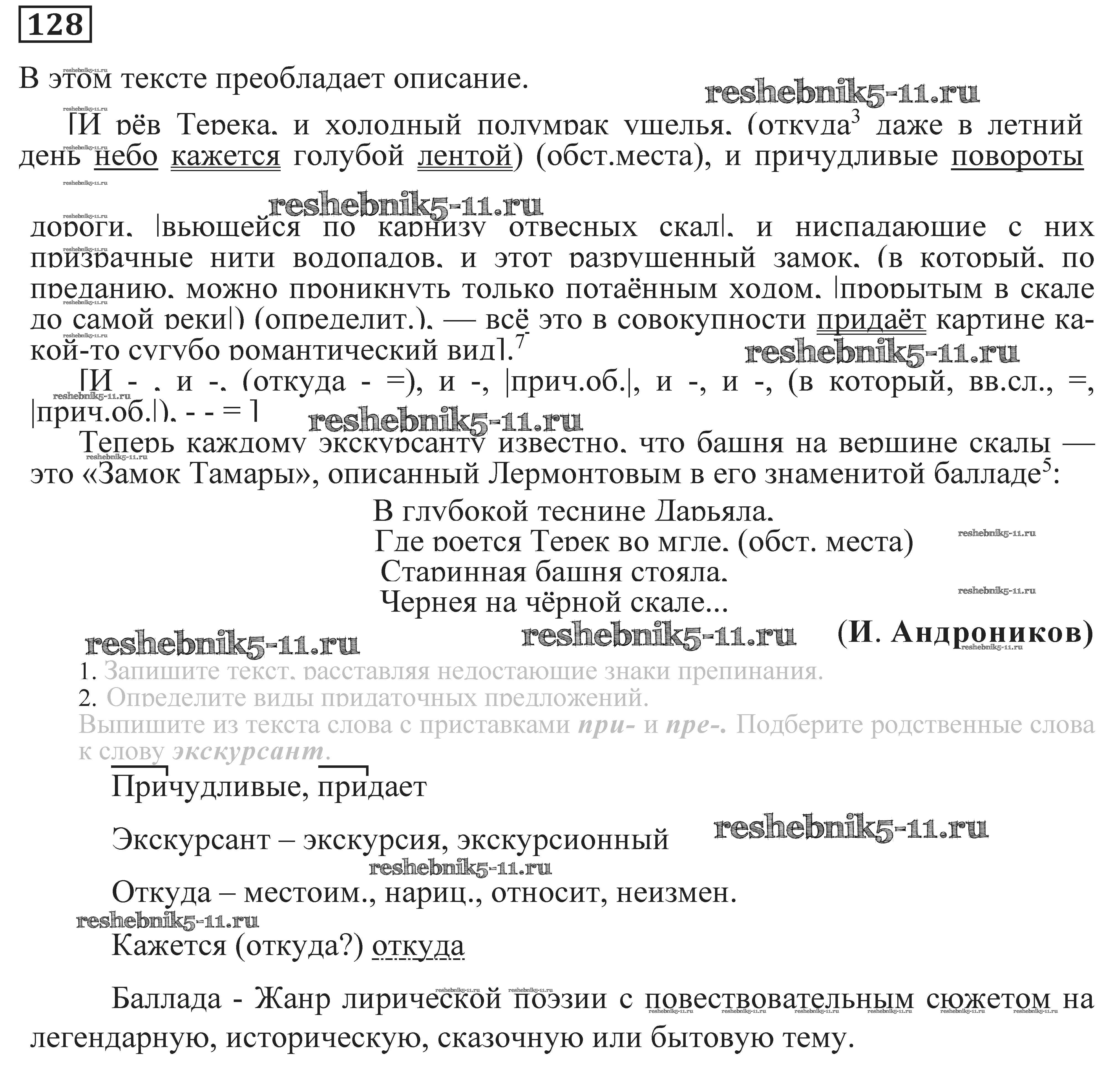 Готовая домашняя работа с ответами по Русскому языку за 9 класс Пичугов, Еремеева, Купалова Практика Просвещение 2022 - Упражнения 128