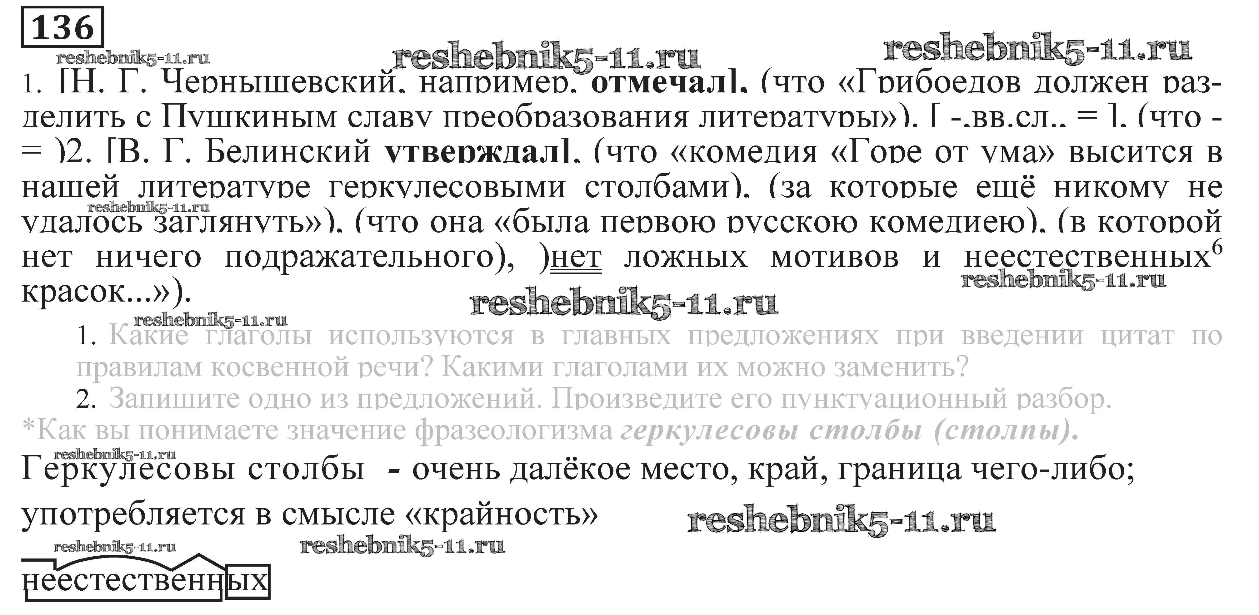 Готовая домашняя работа с ответами по Русскому языку за 9 класс Пичугов, Еремеева, Купалова Практика Просвещение 2022 - Упражнения 136