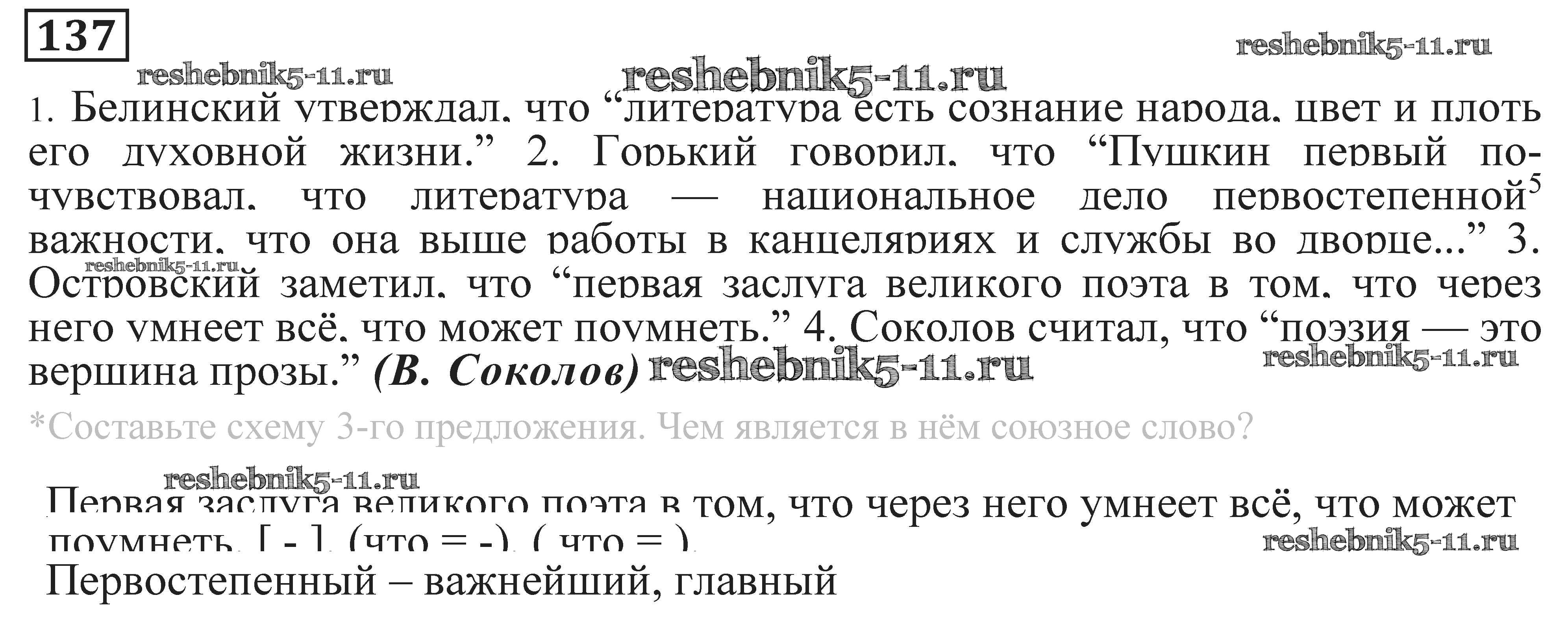 Готовая домашняя работа с ответами по Русскому языку за 9 класс Пичугов, Еремеева, Купалова Практика Просвещение 2022 - Упражнения 137