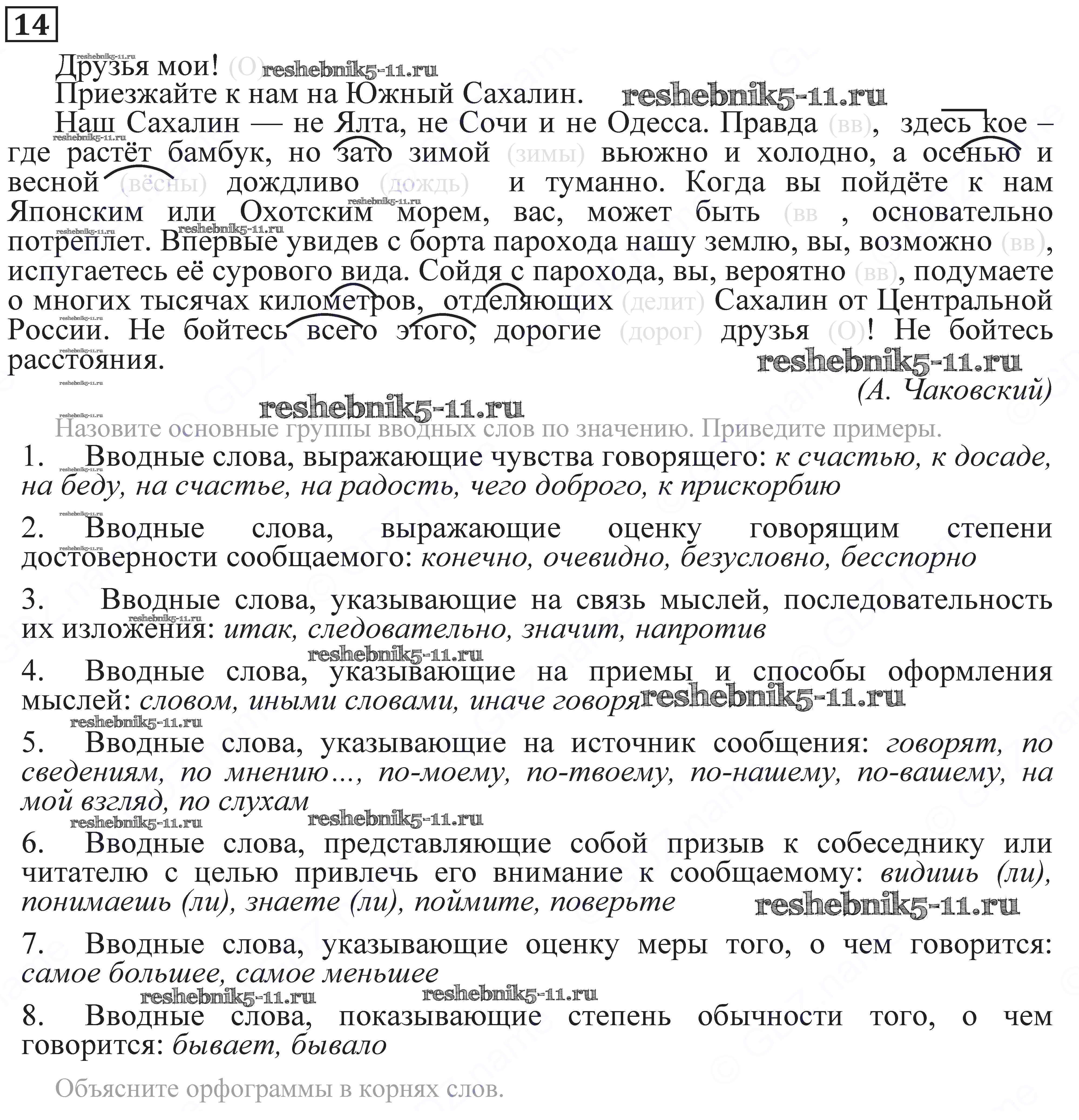 Готовая домашняя работа с ответами по Русскому языку за 9 класс Пичугов, Еремеева, Купалова Практика Просвещение 2022 - Упражнения 14