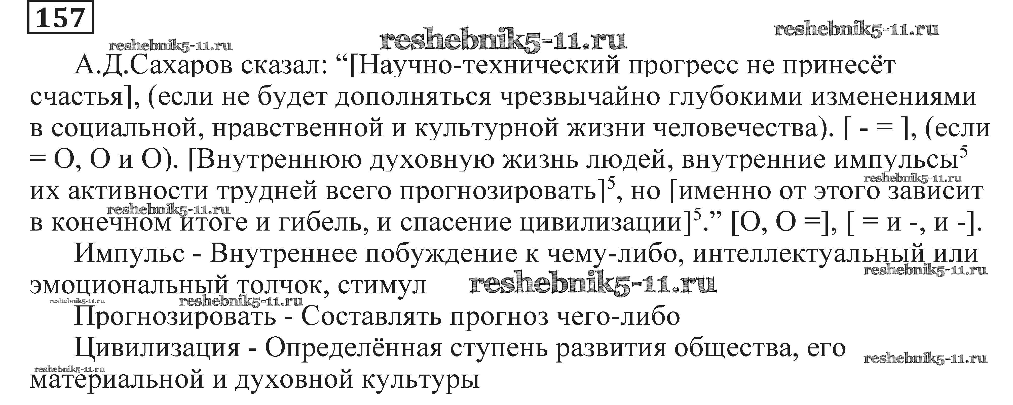 Готовая домашняя работа с ответами по Русскому языку за 9 класс Пичугов, Еремеева, Купалова Практика Просвещение 2022 - Упражнения 157