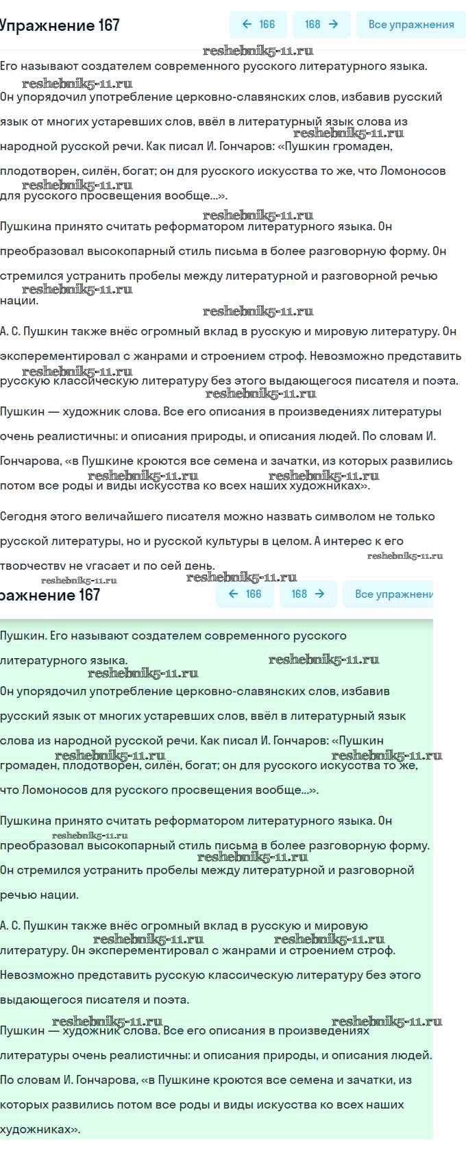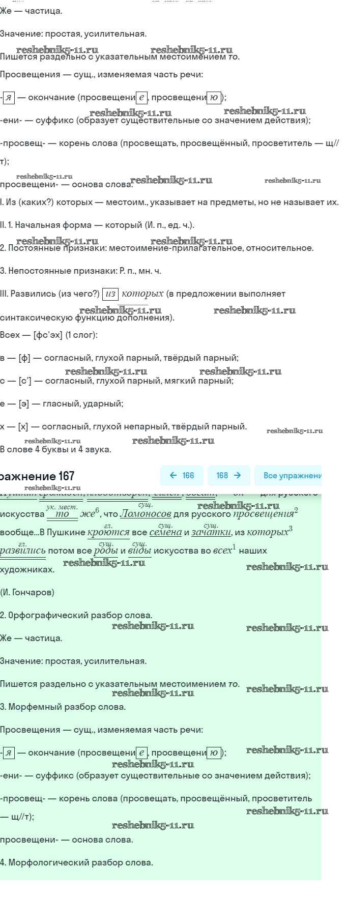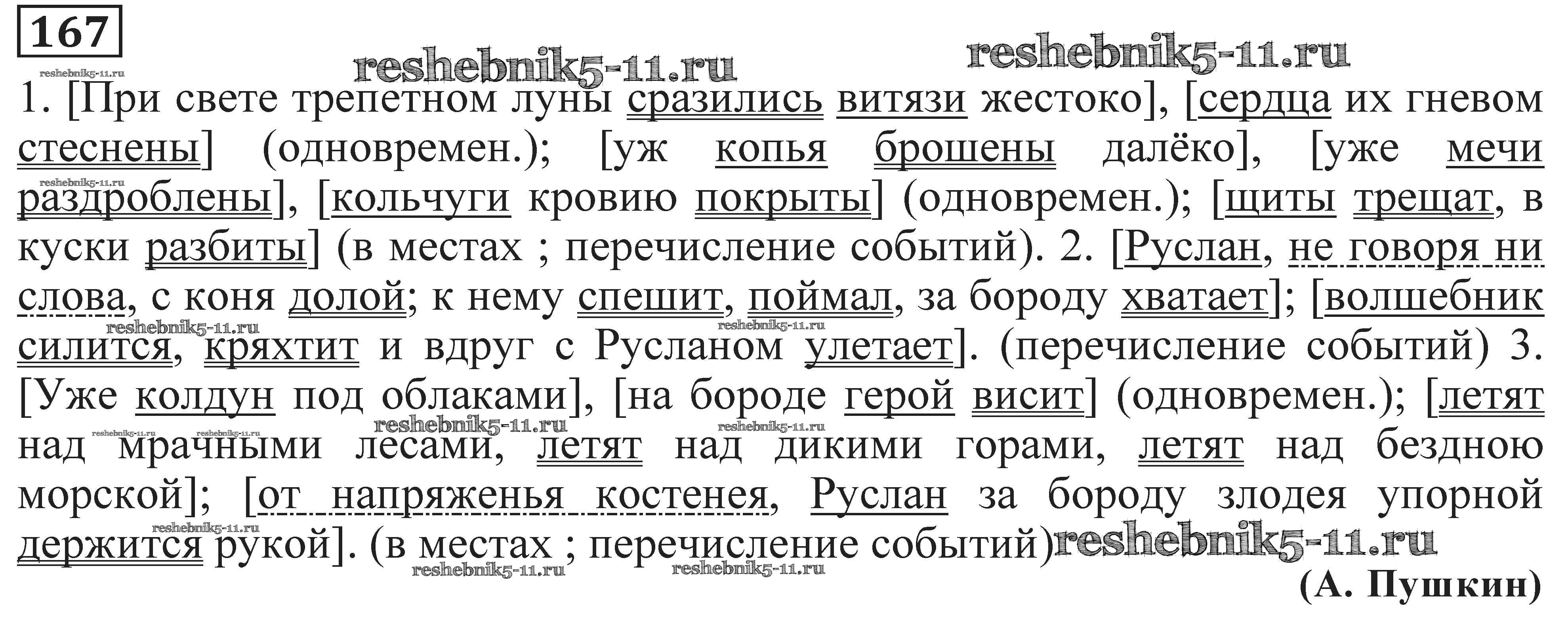 Готовая домашняя работа с ответами по Русскому языку за 9 класс Пичугов, Еремеева, Купалова Практика Просвещение 2022 - Упражнения 167