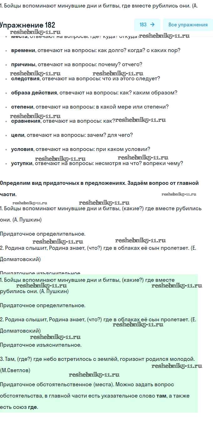 Готовая домашняя работа с ответами по Русскому языку за 9 класс Пичугов, Еремеева, Купалова Практика Просвещение 2022 - Упражнения 182