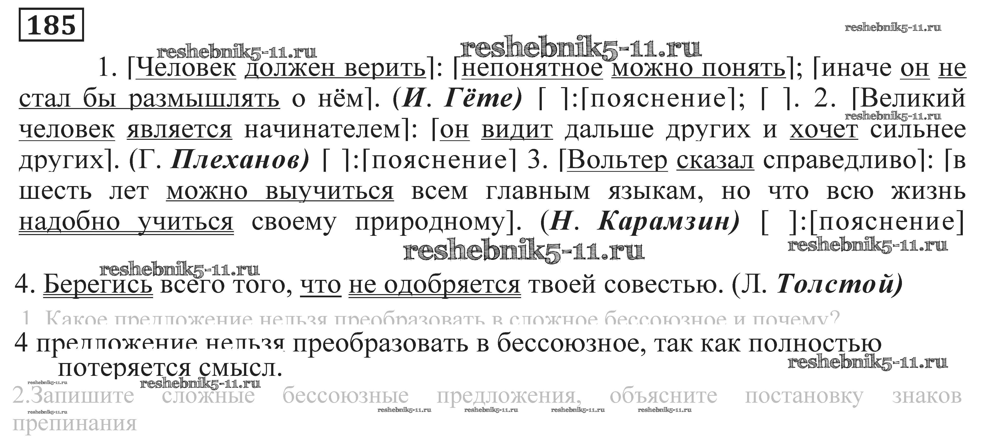 Готовая домашняя работа с ответами по Русскому языку за 9 класс Пичугов, Еремеева, Купалова Практика Просвещение 2022 - Упражнения 185