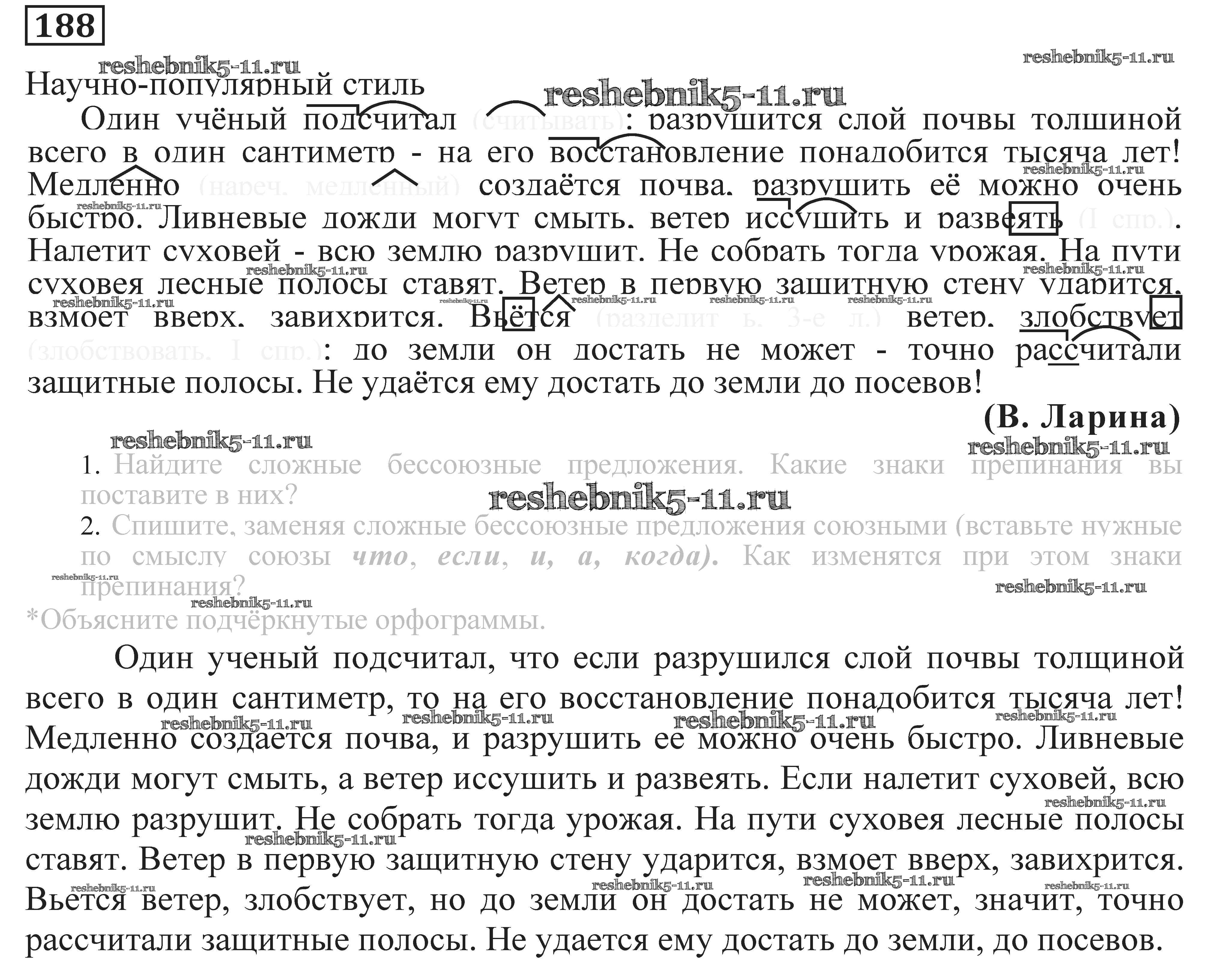 Готовая домашняя работа с ответами по Русскому языку за 9 класс Пичугов, Еремеева, Купалова Практика Просвещение 2022 - Упражнения 188
