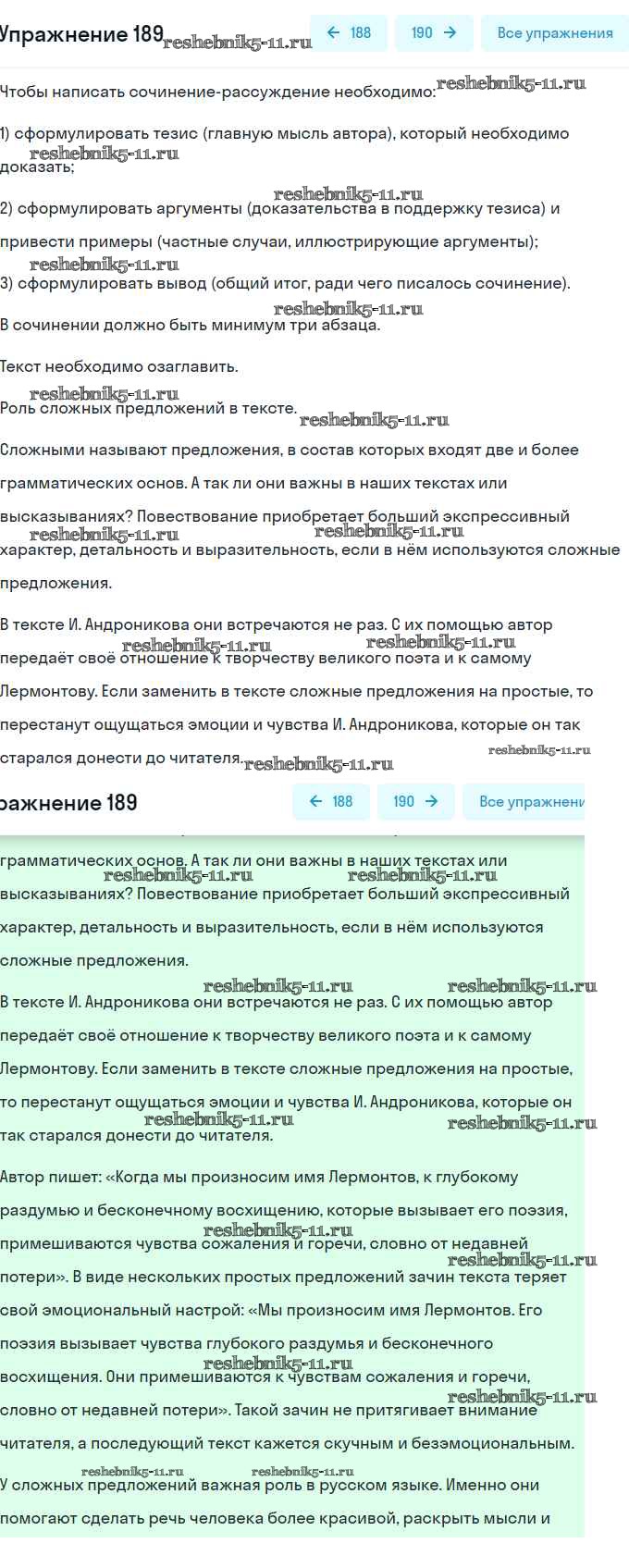 Готовая домашняя работа с ответами по Русскому языку за 9 класс Пичугов, Еремеева, Купалова Практика Просвещение 2022 - Упражнения 189