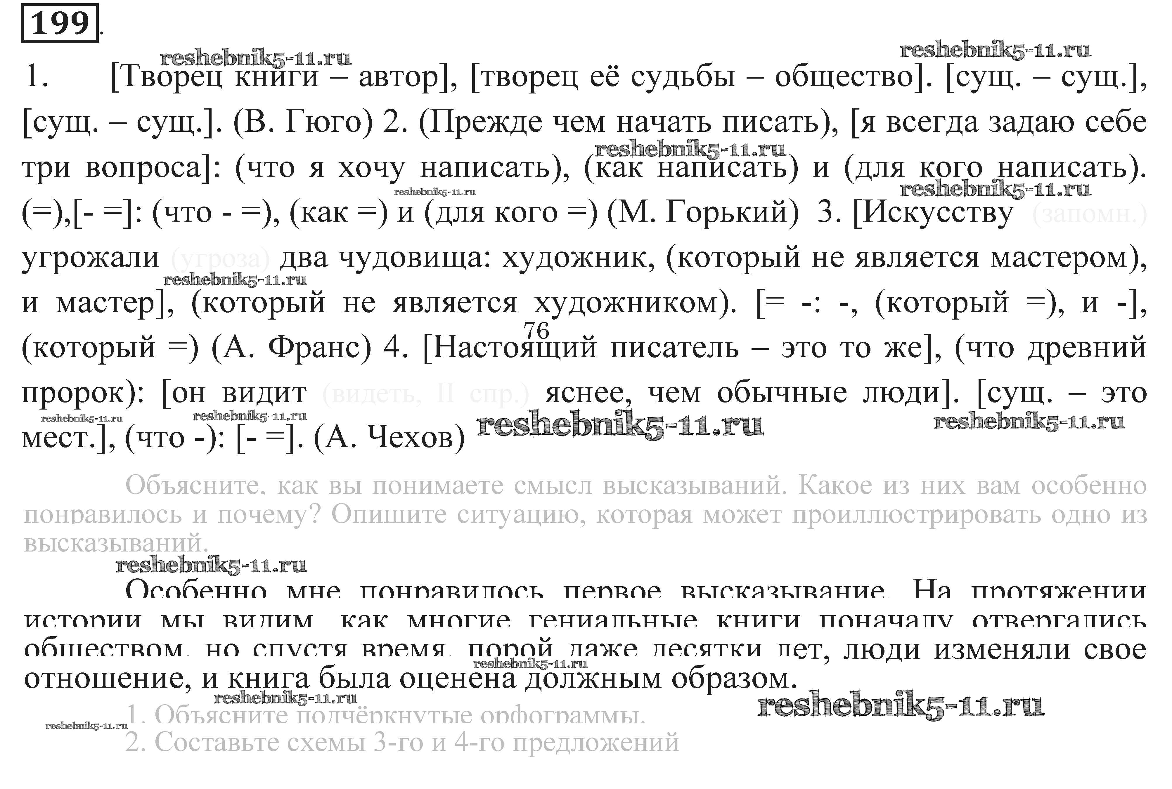 Готовая домашняя работа с ответами по Русскому языку за 9 класс Пичугов, Еремеева, Купалова Практика Просвещение 2022 - Упражнения 199