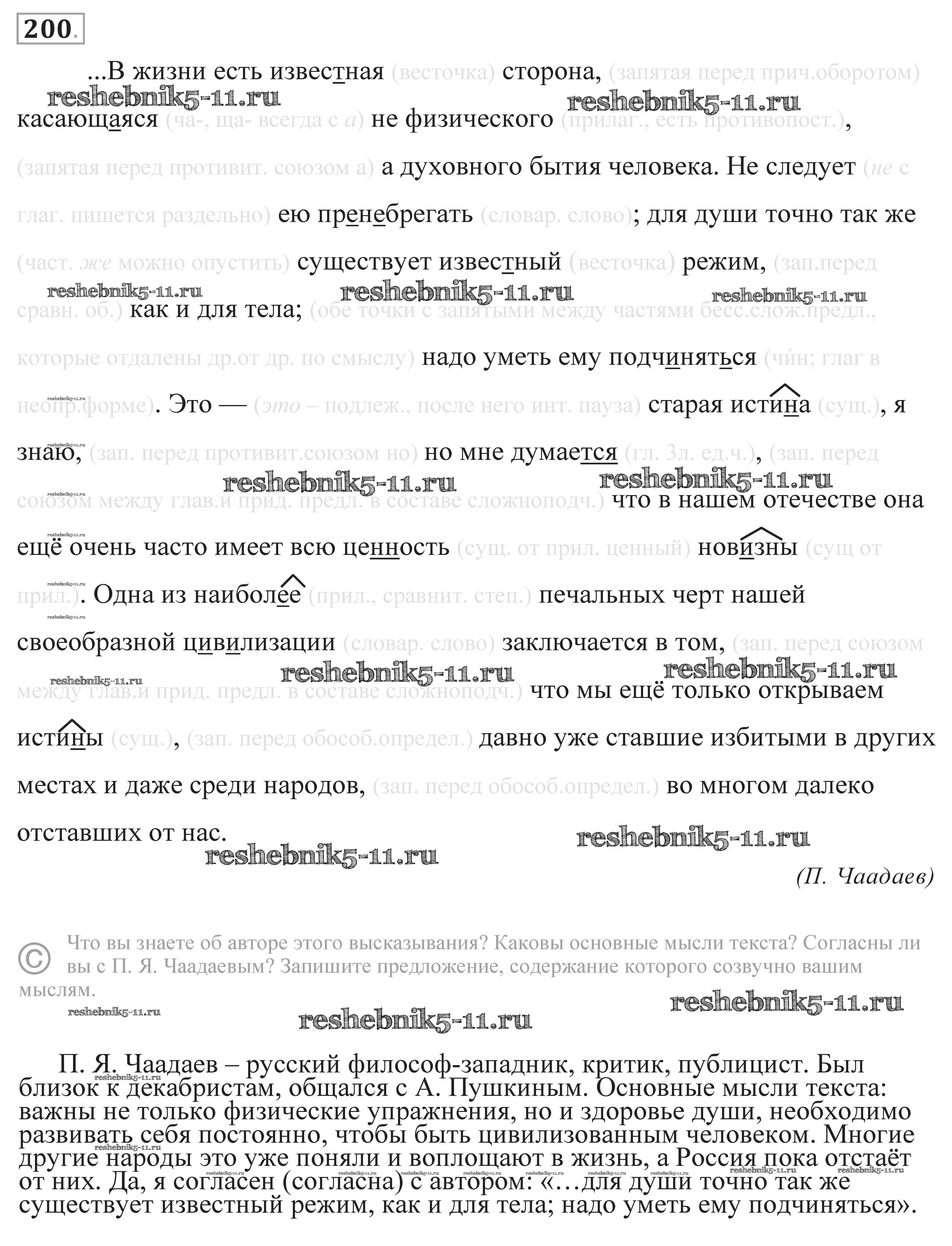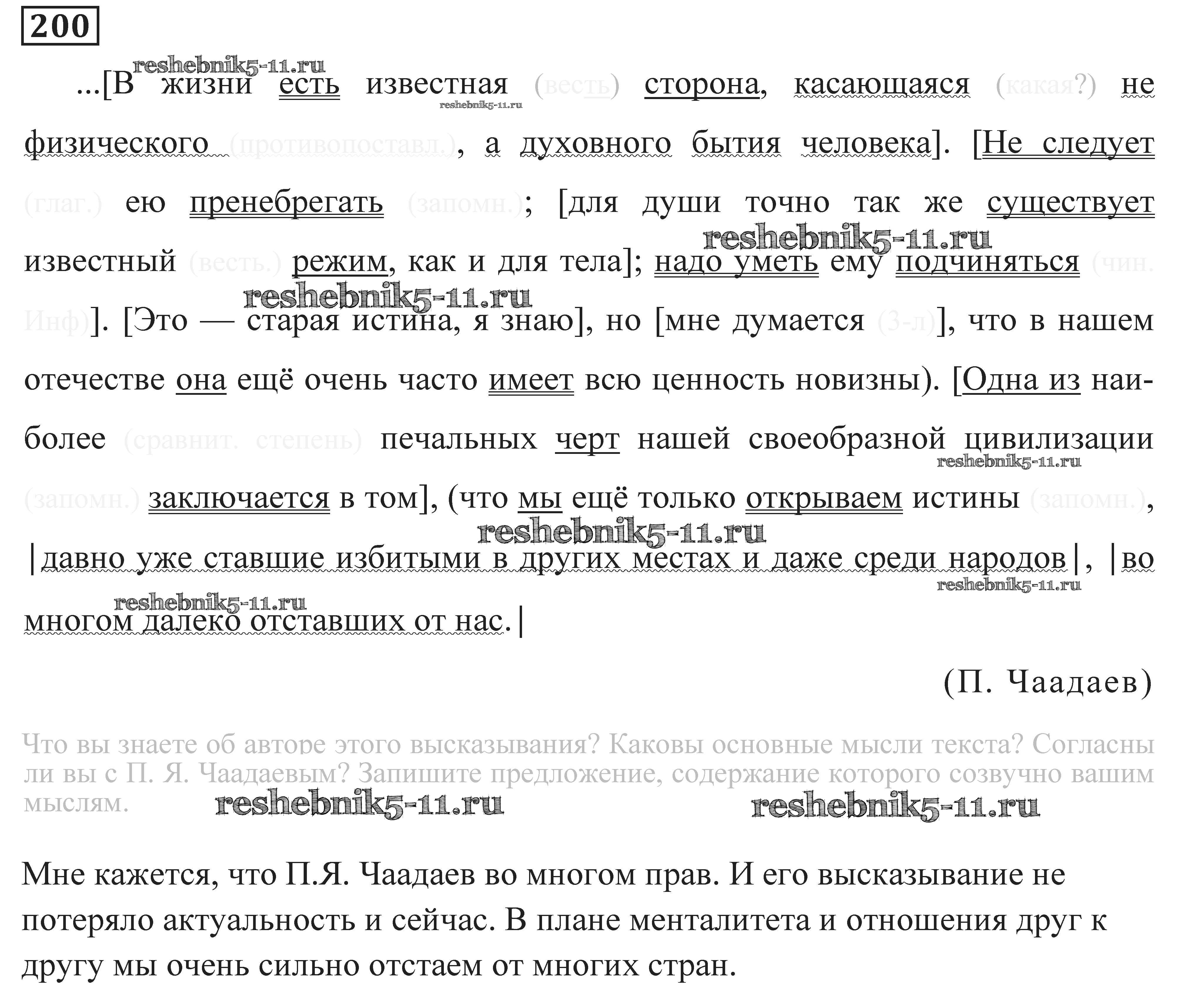 Готовая домашняя работа с ответами по Русскому языку за 9 класс Пичугов, Еремеева, Купалова Практика Просвещение 2022 - Упражнения 200