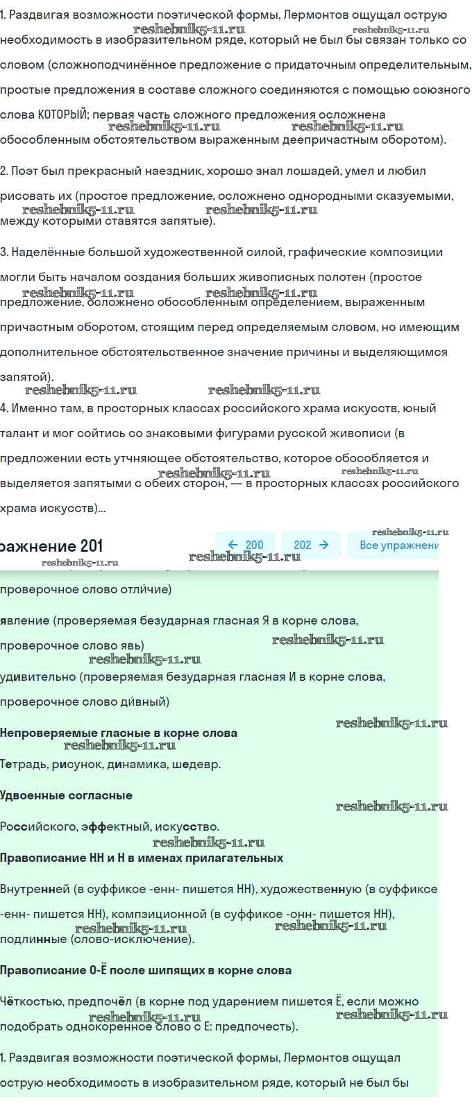 Готовая домашняя работа с ответами по Русскому языку за 9 класс Пичугов, Еремеева, Купалова Практика Просвещение 2022 - Упражнения 201