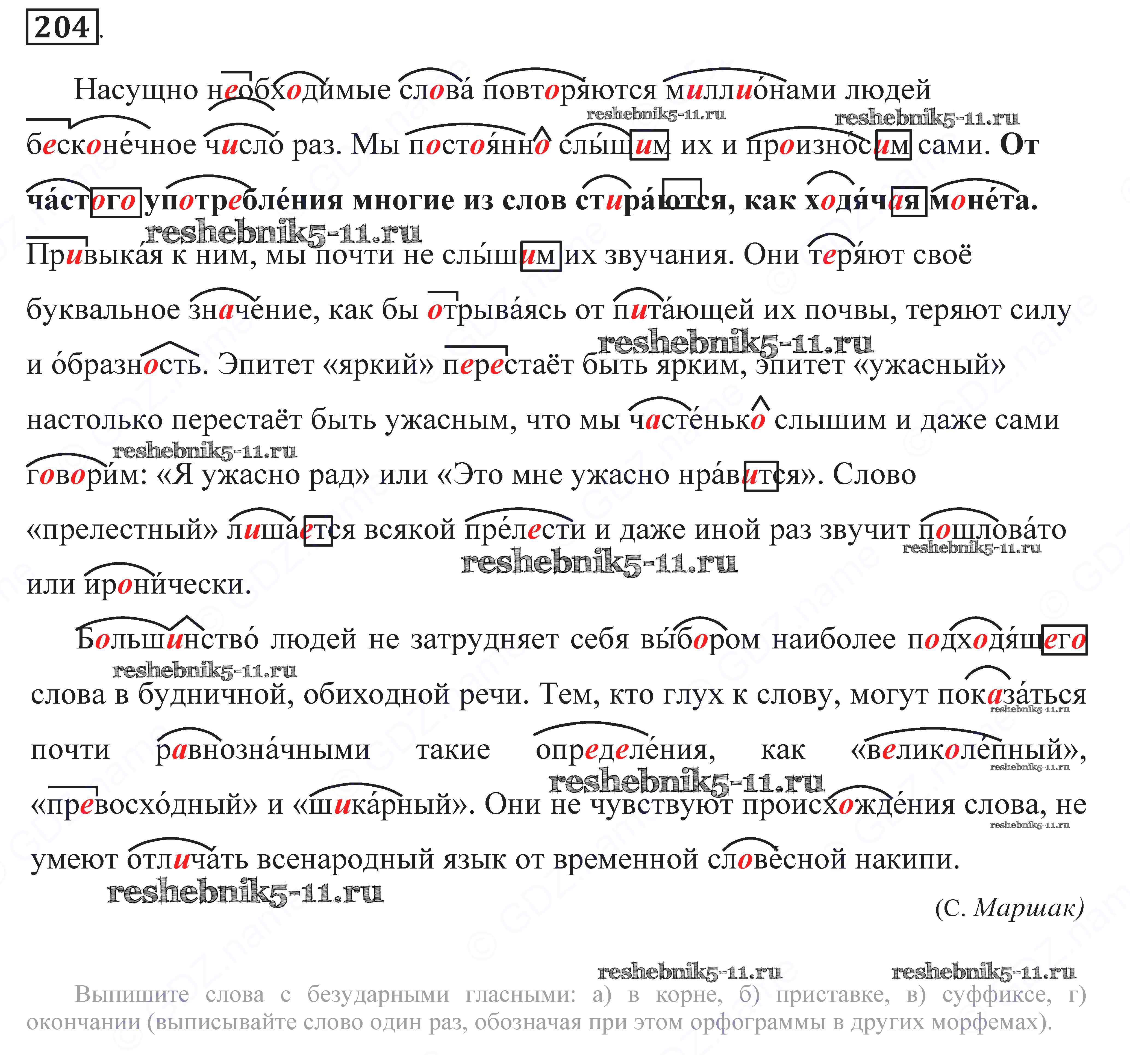Готовая домашняя работа с ответами по Русскому языку за 9 класс Пичугов, Еремеева, Купалова Практика Просвещение 2022 - Упражнения 204