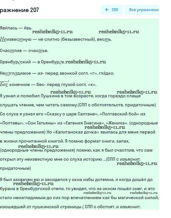 Готовая домашняя работа с ответами по Русскому языку за 9 класс Пичугов, Еремеева, Купалова Практика Просвещение 2022 - Упражнения 207