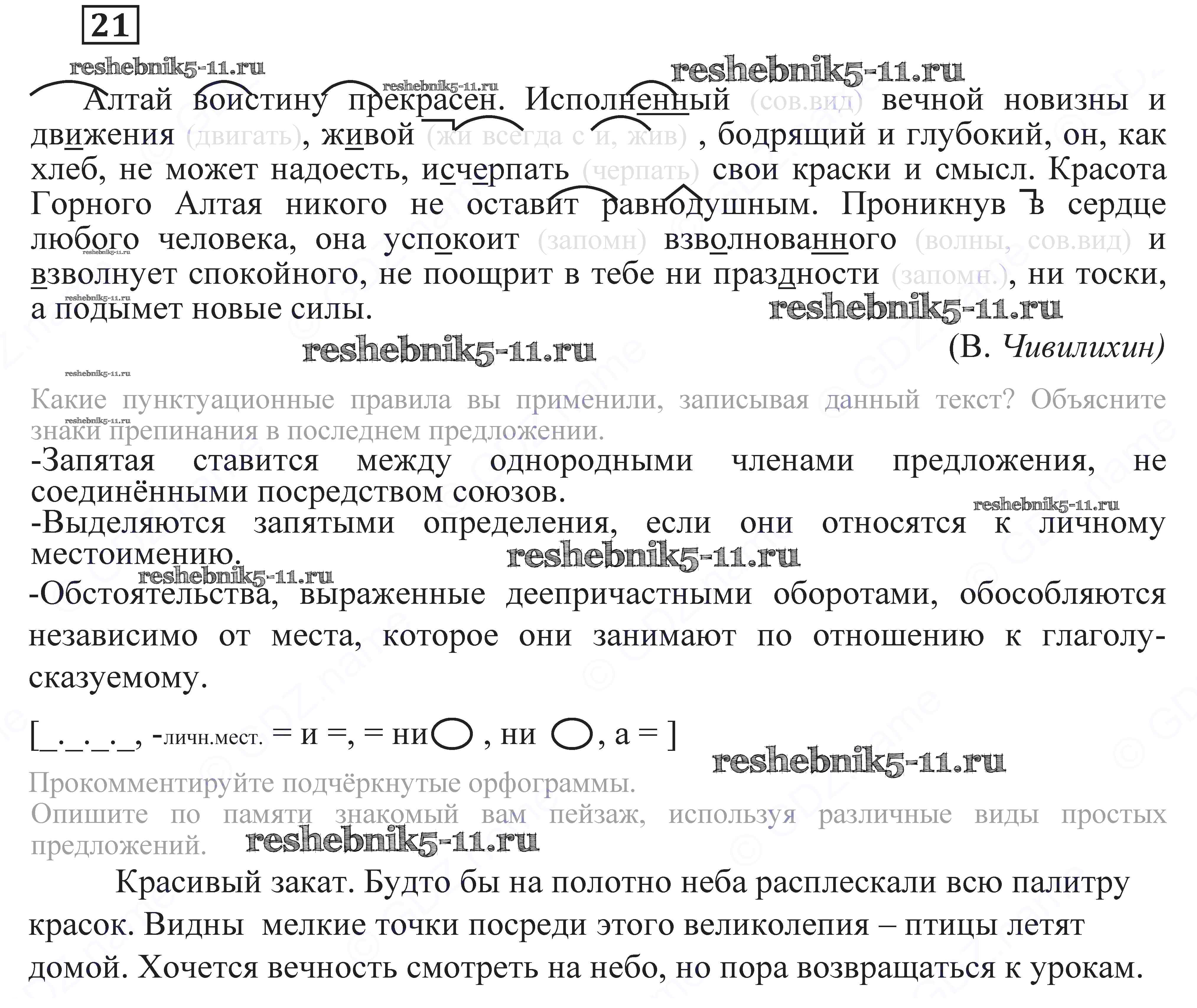 Готовая домашняя работа с ответами по Русскому языку за 9 класс Пичугов, Еремеева, Купалова Практика Просвещение 2022 - Упражнения 21