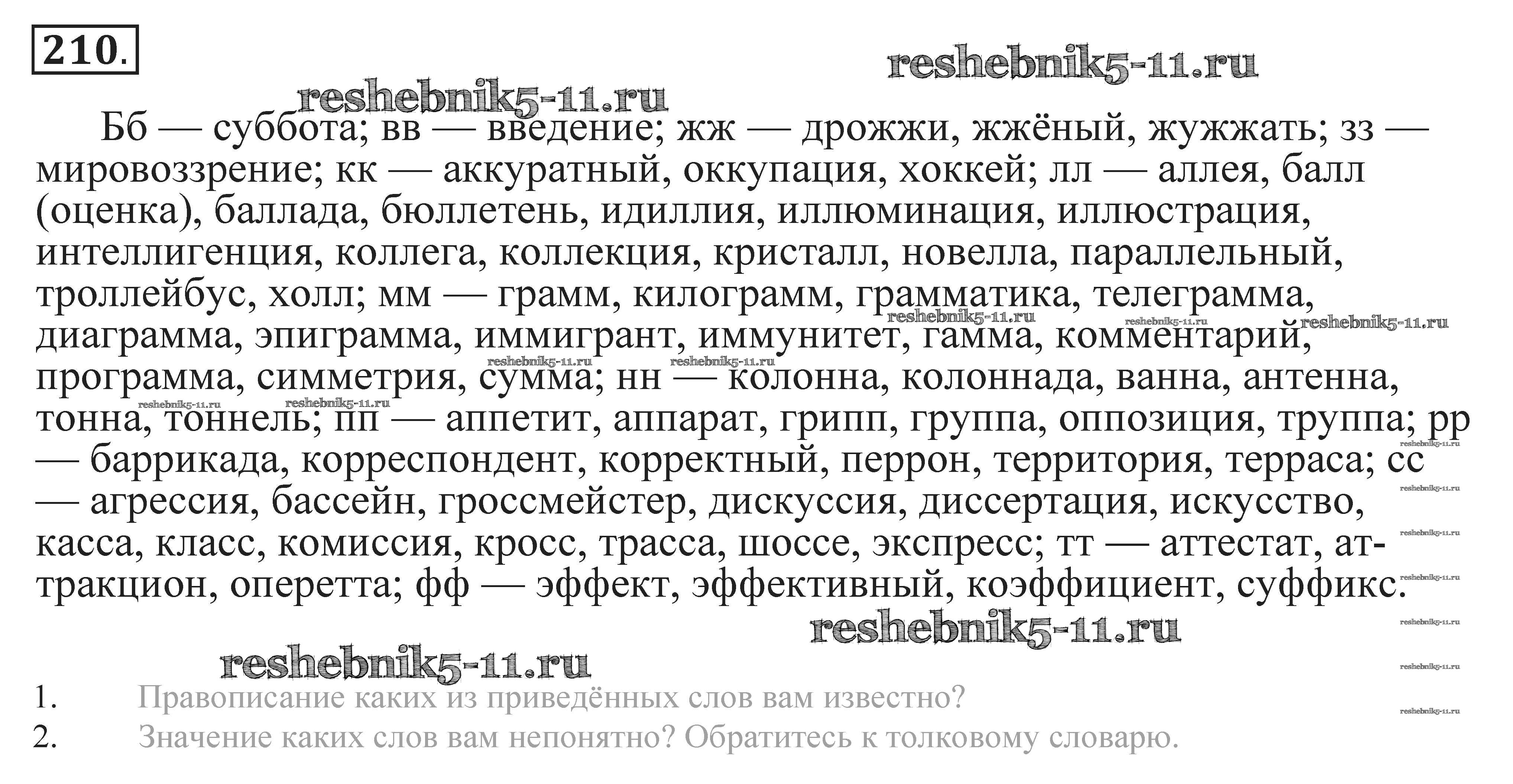 Готовая домашняя работа с ответами по Русскому языку за 9 класс Пичугов, Еремеева, Купалова Практика Просвещение 2022 - Упражнения 210