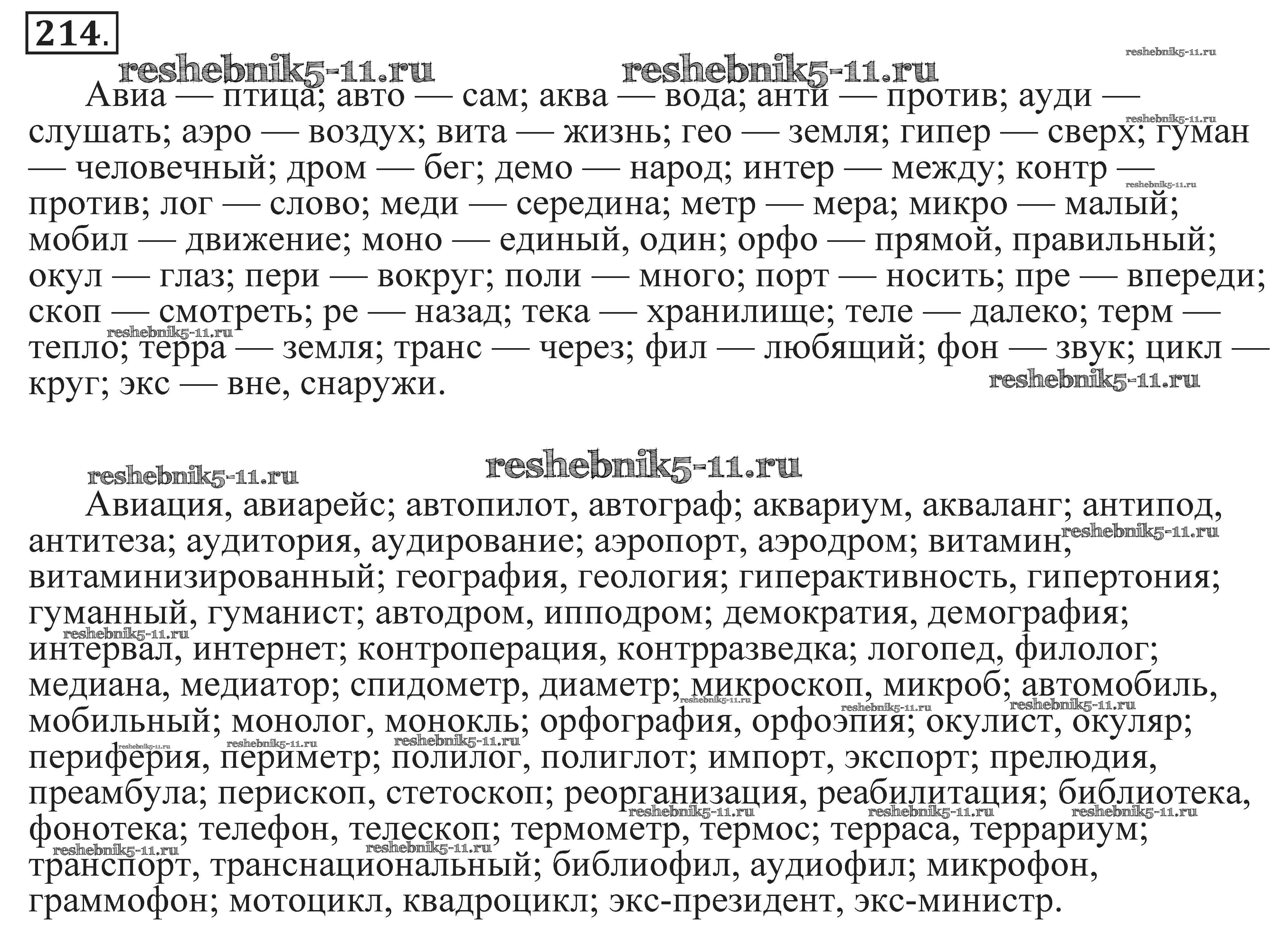 Готовая домашняя работа с ответами по Русскому языку за 9 класс Пичугов, Еремеева, Купалова Практика Просвещение 2022 - Упражнения 214