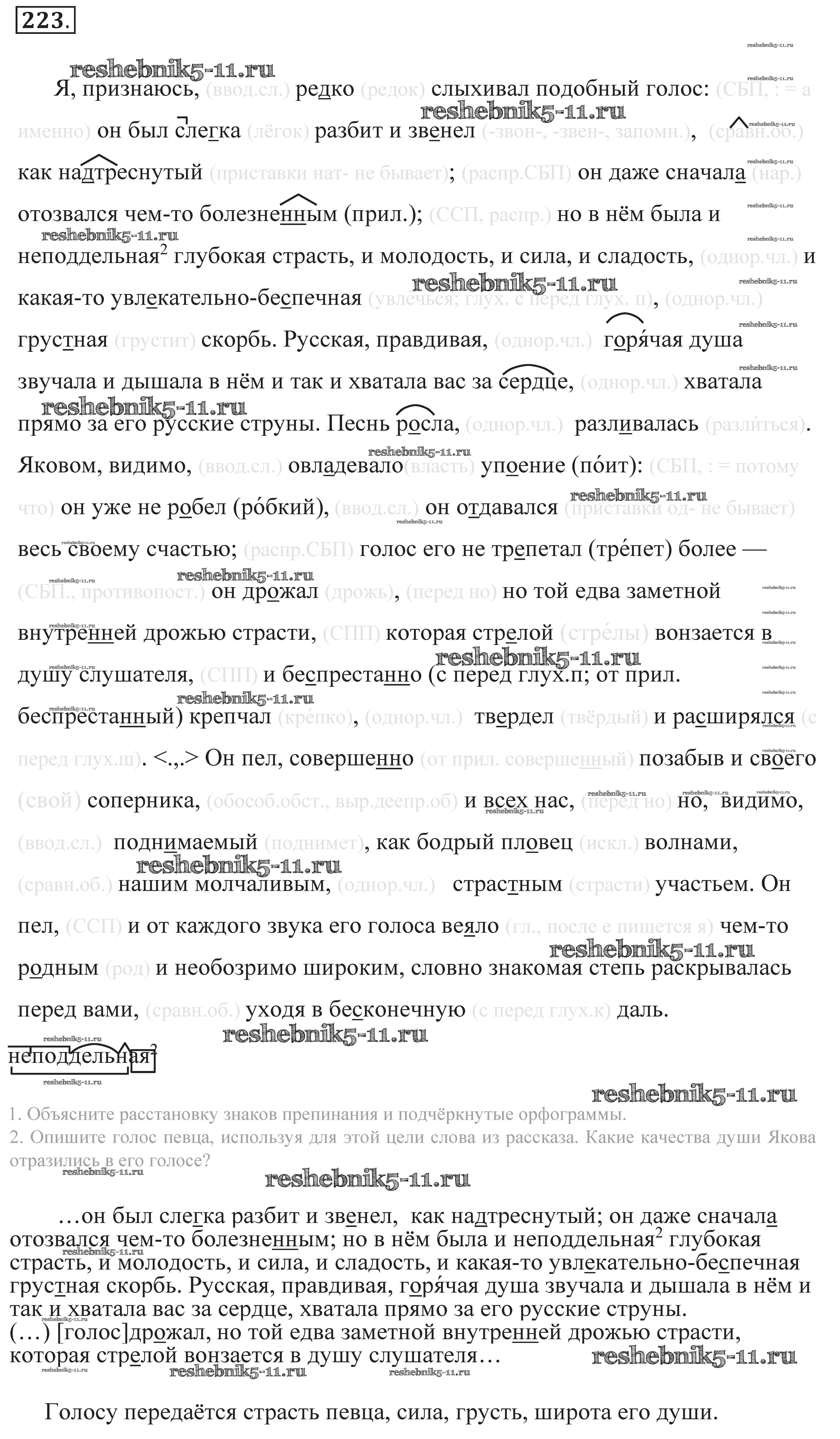 Готовая домашняя работа с ответами по Русскому языку за 9 класс Пичугов, Еремеева, Купалова Практика Просвещение 2022 - Упражнения 223
