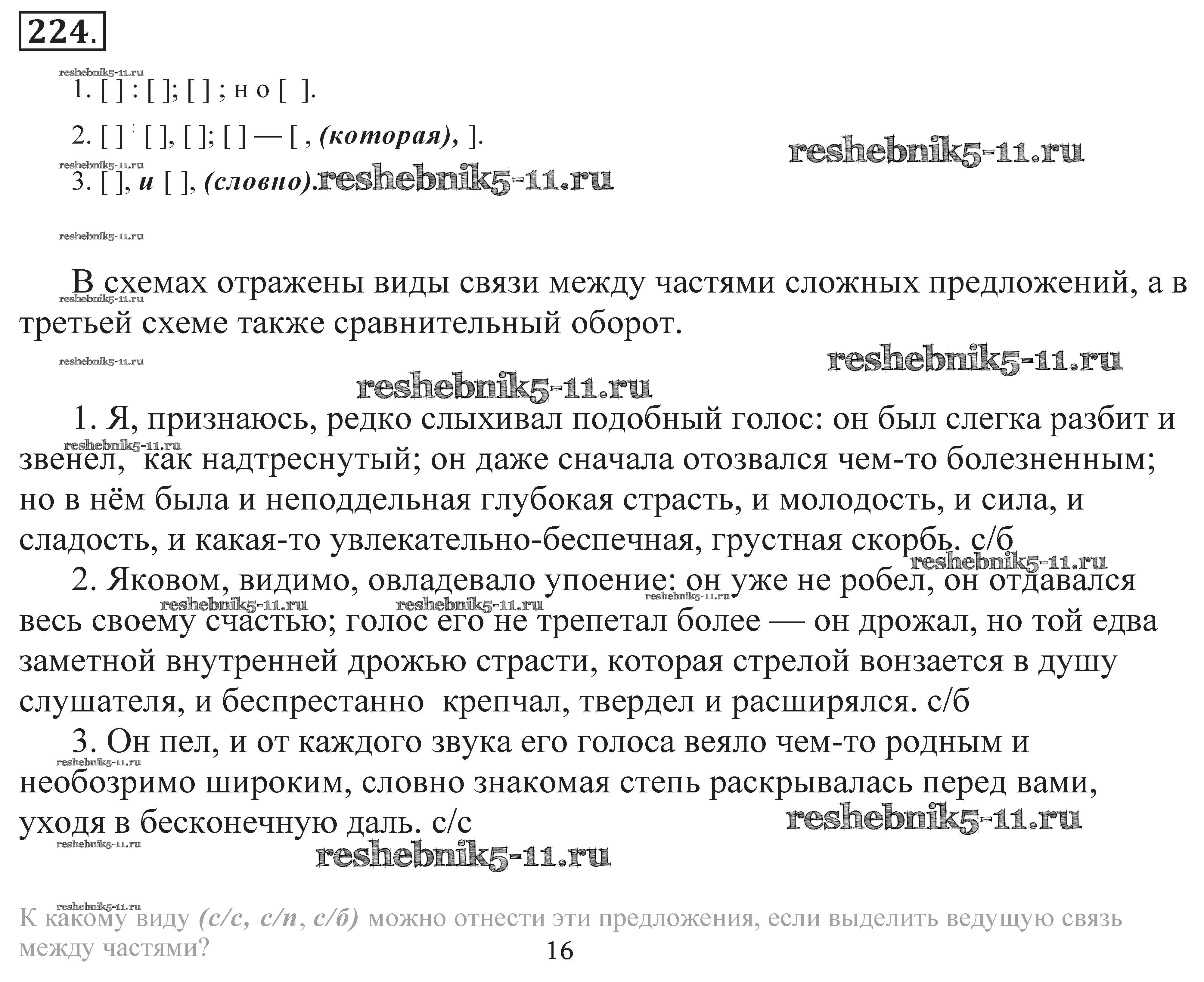 Готовая домашняя работа с ответами по Русскому языку за 9 класс Пичугов, Еремеева, Купалова Практика Просвещение 2022 - Упражнения 224