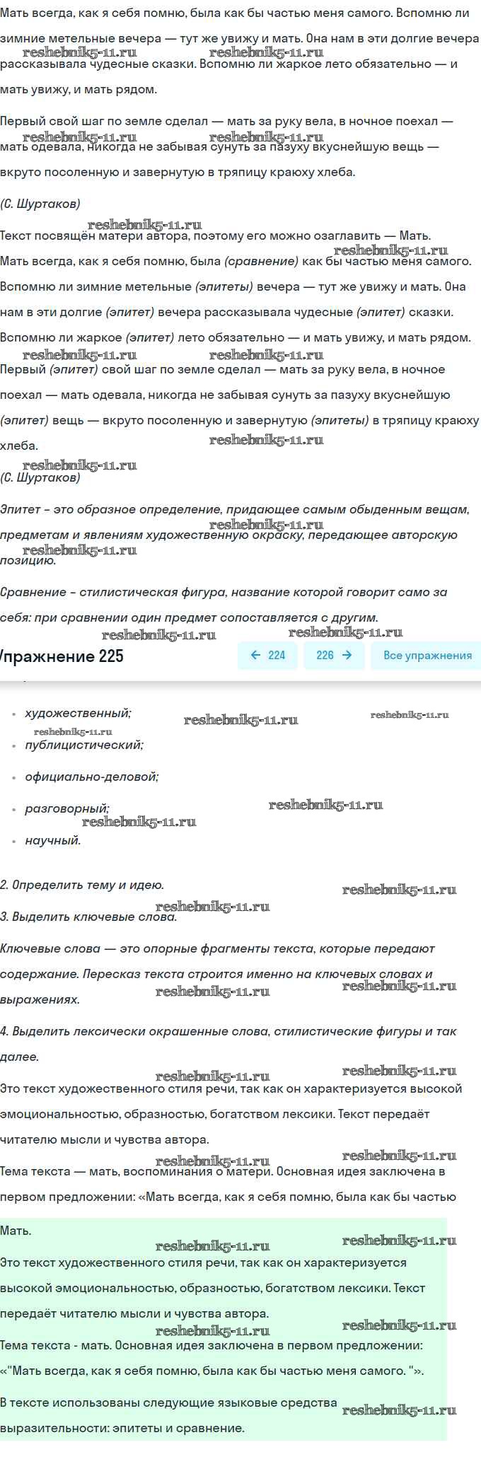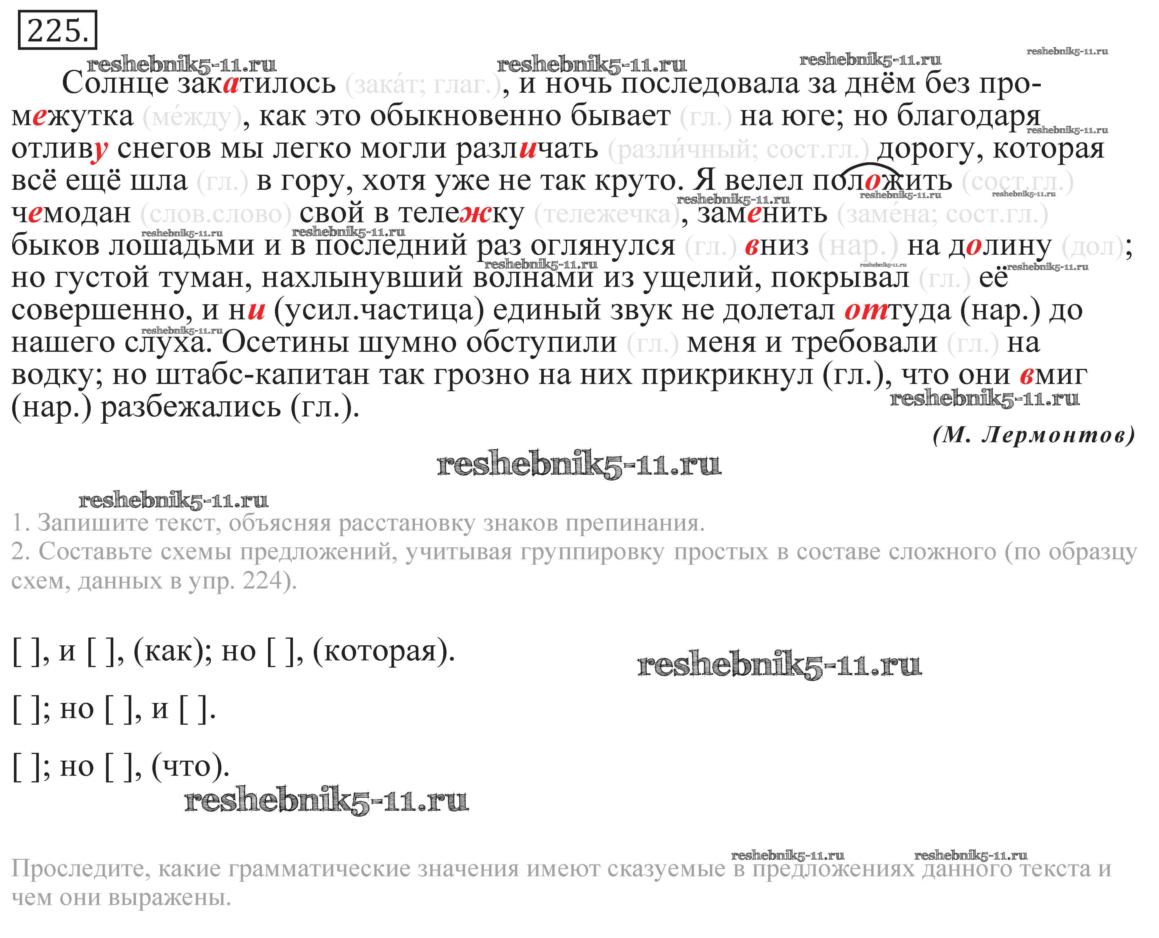 Готовая домашняя работа с ответами по Русскому языку за 9 класс Пичугов, Еремеева, Купалова Практика Просвещение 2022 - Упражнения 225