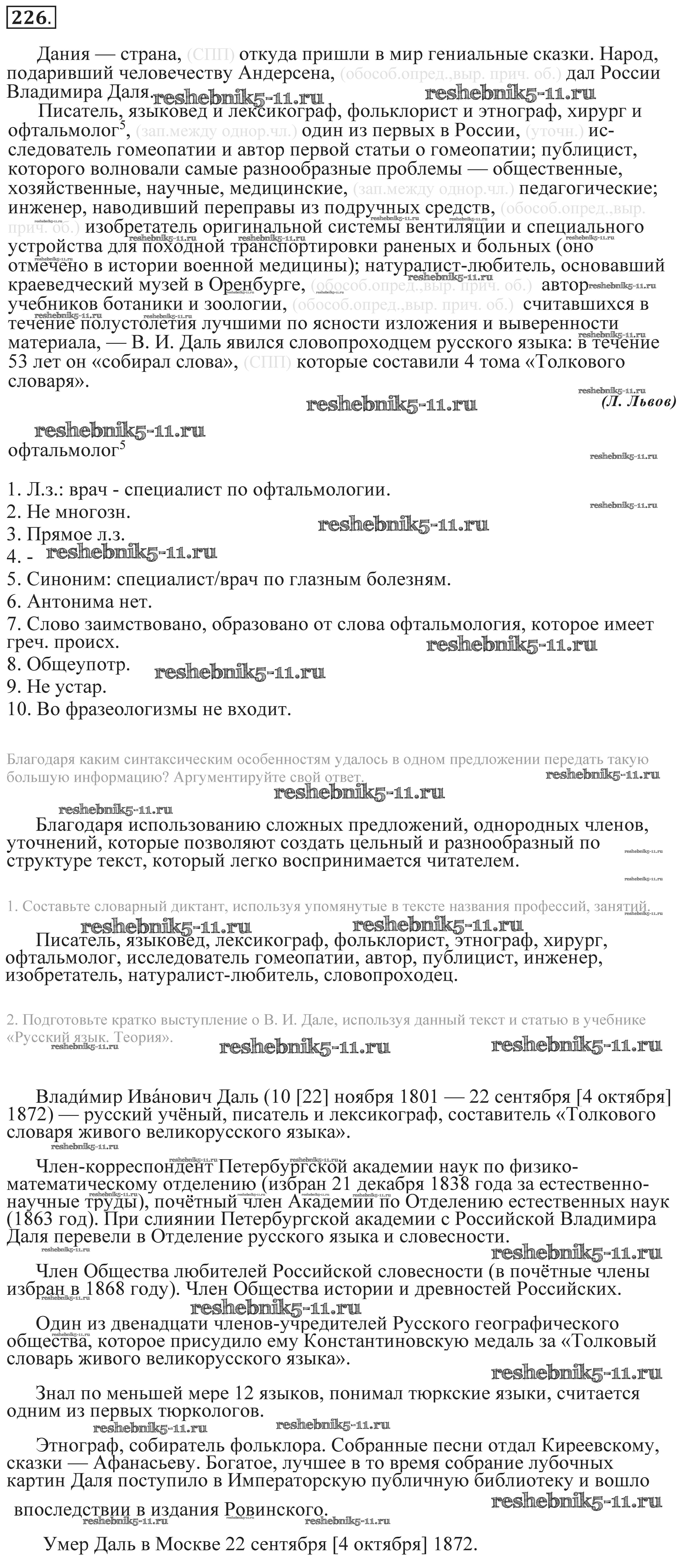 Готовая домашняя работа с ответами по Русскому языку за 9 класс Пичугов, Еремеева, Купалова Практика Просвещение 2022 - Упражнения 226