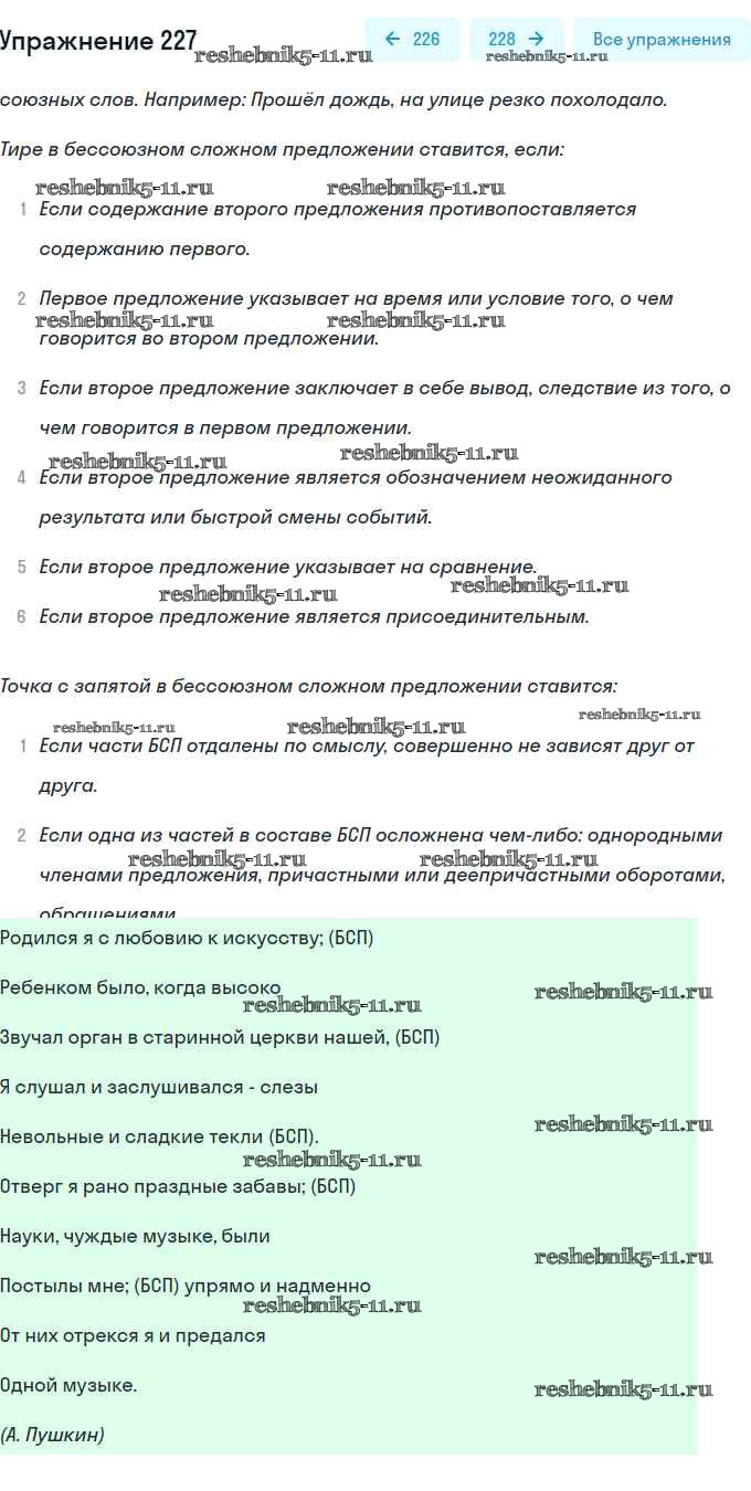Готовая домашняя работа с ответами по Русскому языку за 9 класс Пичугов, Еремеева, Купалова Практика Просвещение 2022 - Упражнения 227