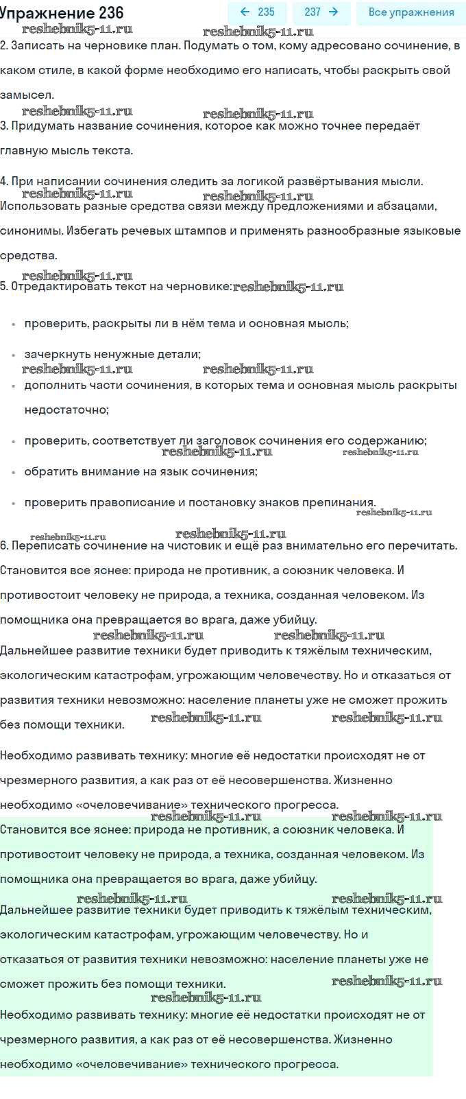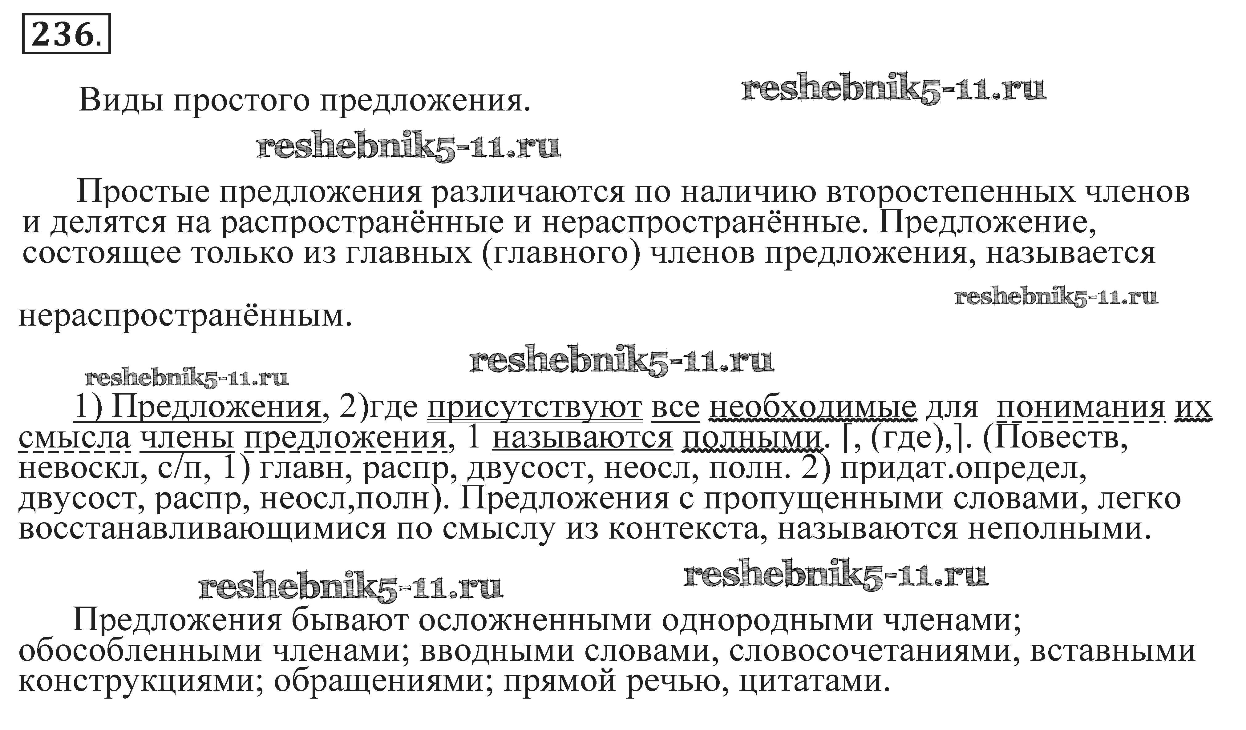 Готовая домашняя работа с ответами по Русскому языку за 9 класс Пичугов, Еремеева, Купалова Практика Просвещение 2022 - Упражнения 236