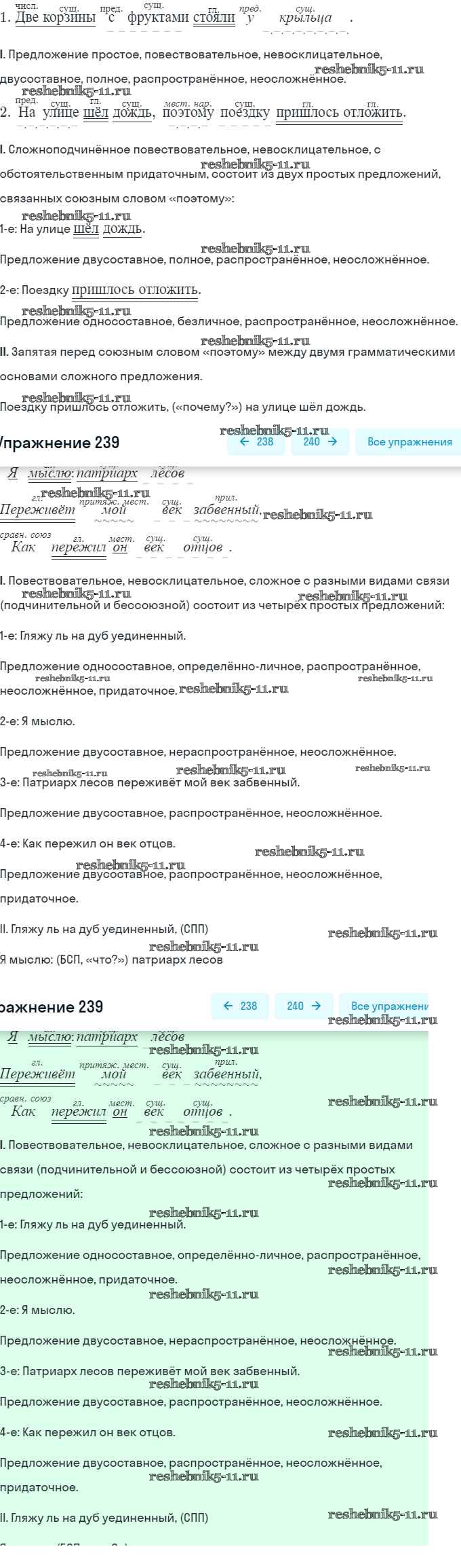 Готовая домашняя работа с ответами по Русскому языку за 9 класс Пичугов, Еремеева, Купалова Практика Просвещение 2022 - Упражнения 239