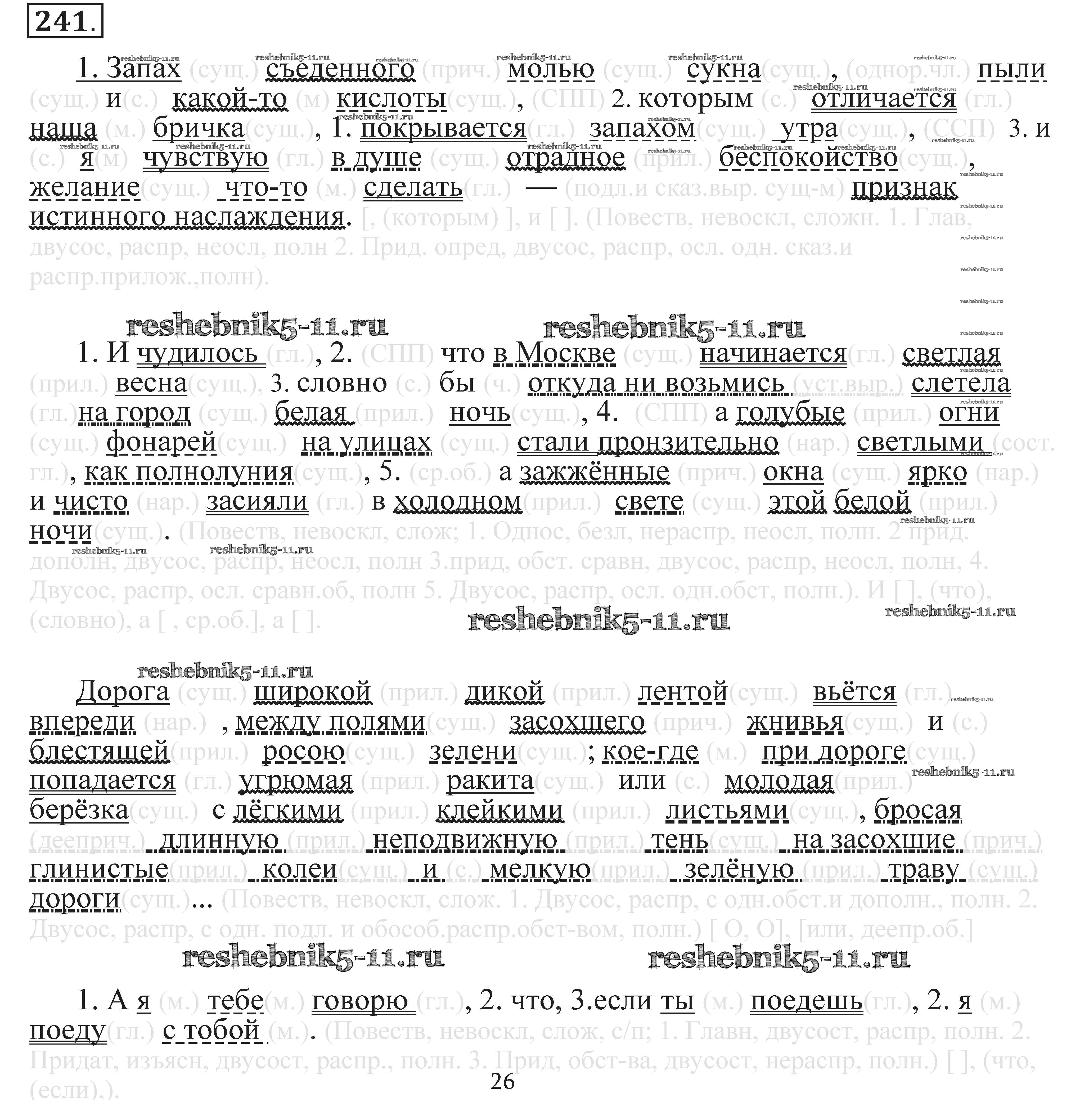 Готовая домашняя работа с ответами по Русскому языку за 9 класс Пичугов, Еремеева, Купалова Практика Просвещение 2022 - Упражнения 241
