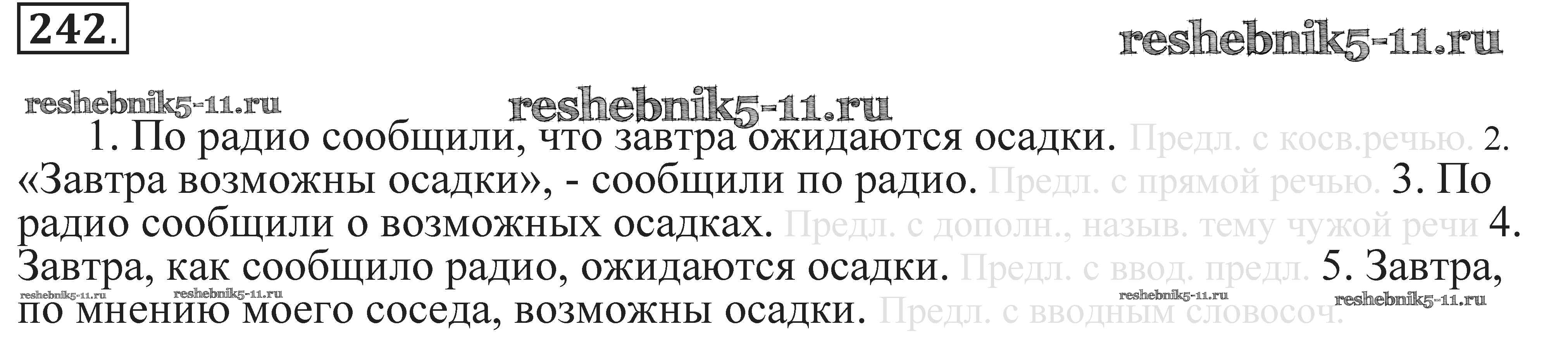 Готовая домашняя работа с ответами по Русскому языку за 9 класс Пичугов, Еремеева, Купалова Практика Просвещение 2022 - Упражнения 242