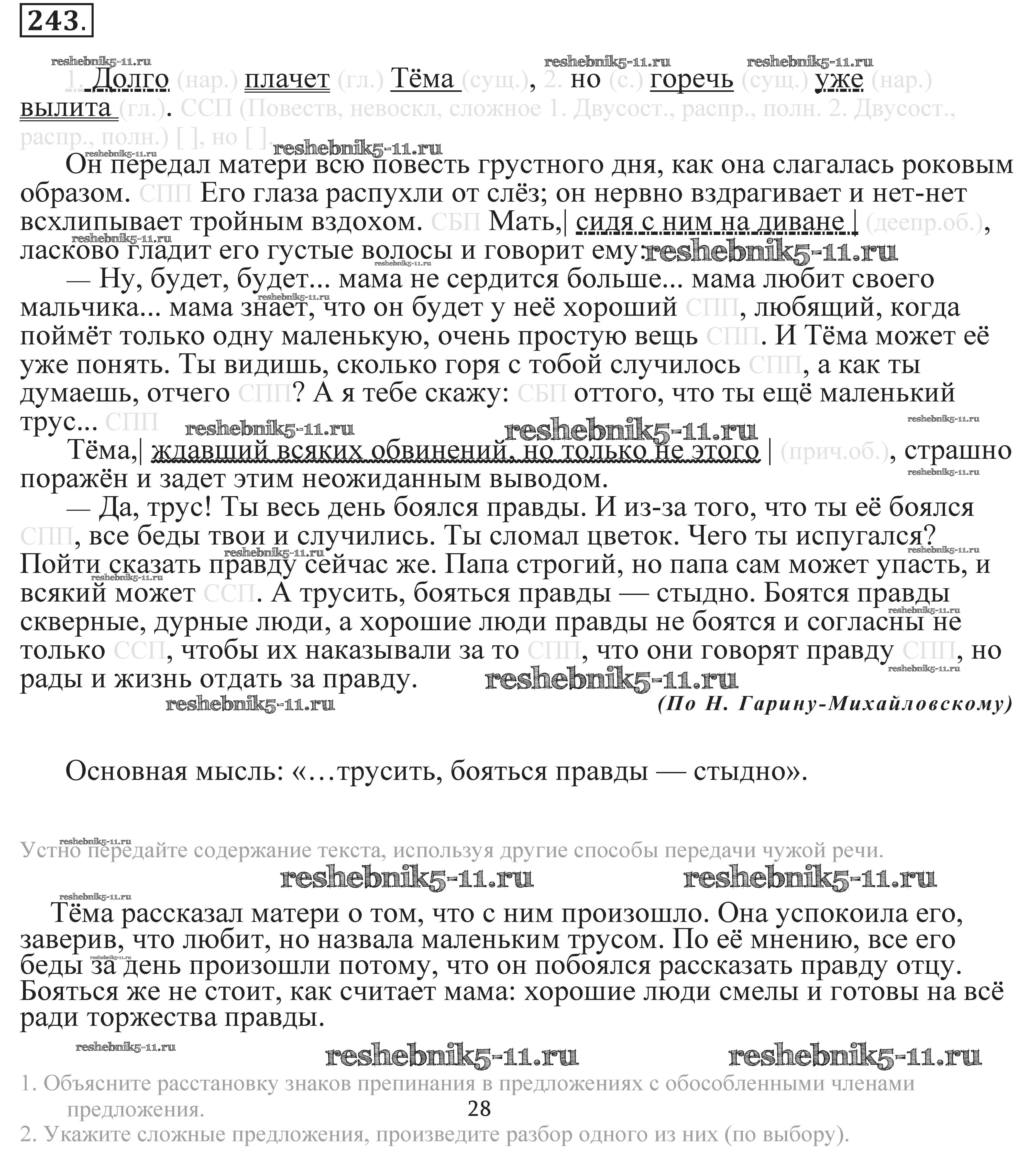 Готовая домашняя работа с ответами по Русскому языку за 9 класс Пичугов, Еремеева, Купалова Практика Просвещение 2022 - Упражнения 243