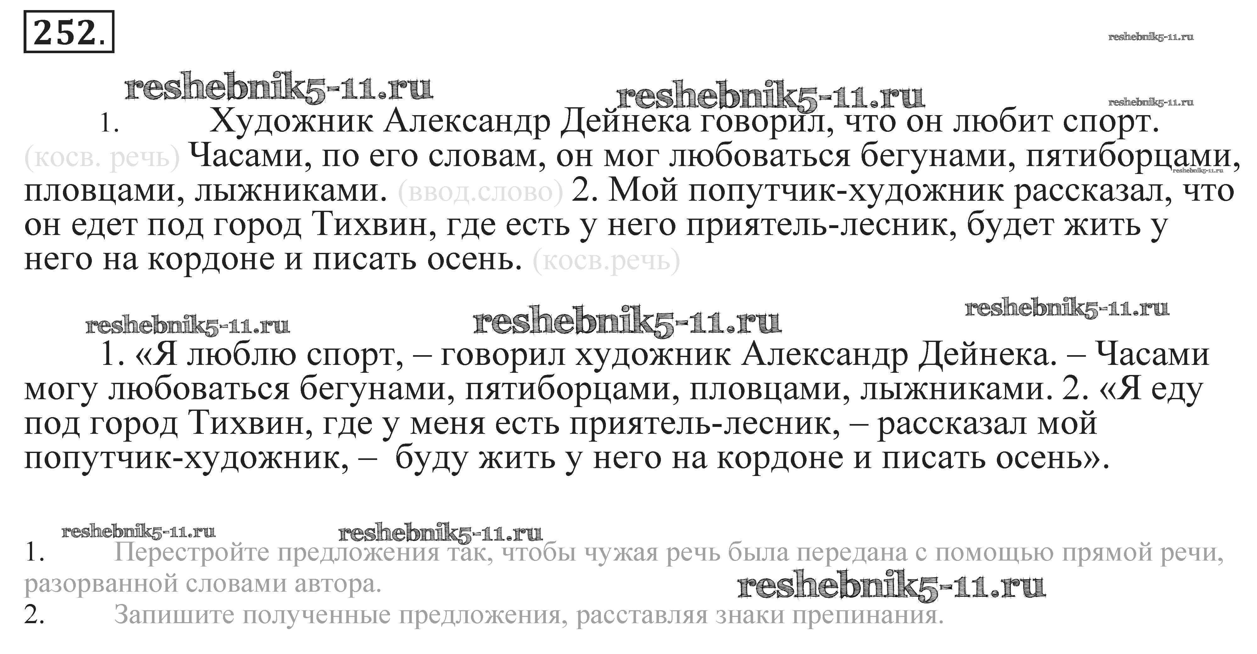 Готовая домашняя работа с ответами по Русскому языку за 9 класс Пичугов, Еремеева, Купалова Практика Просвещение 2022 - Упражнения 252