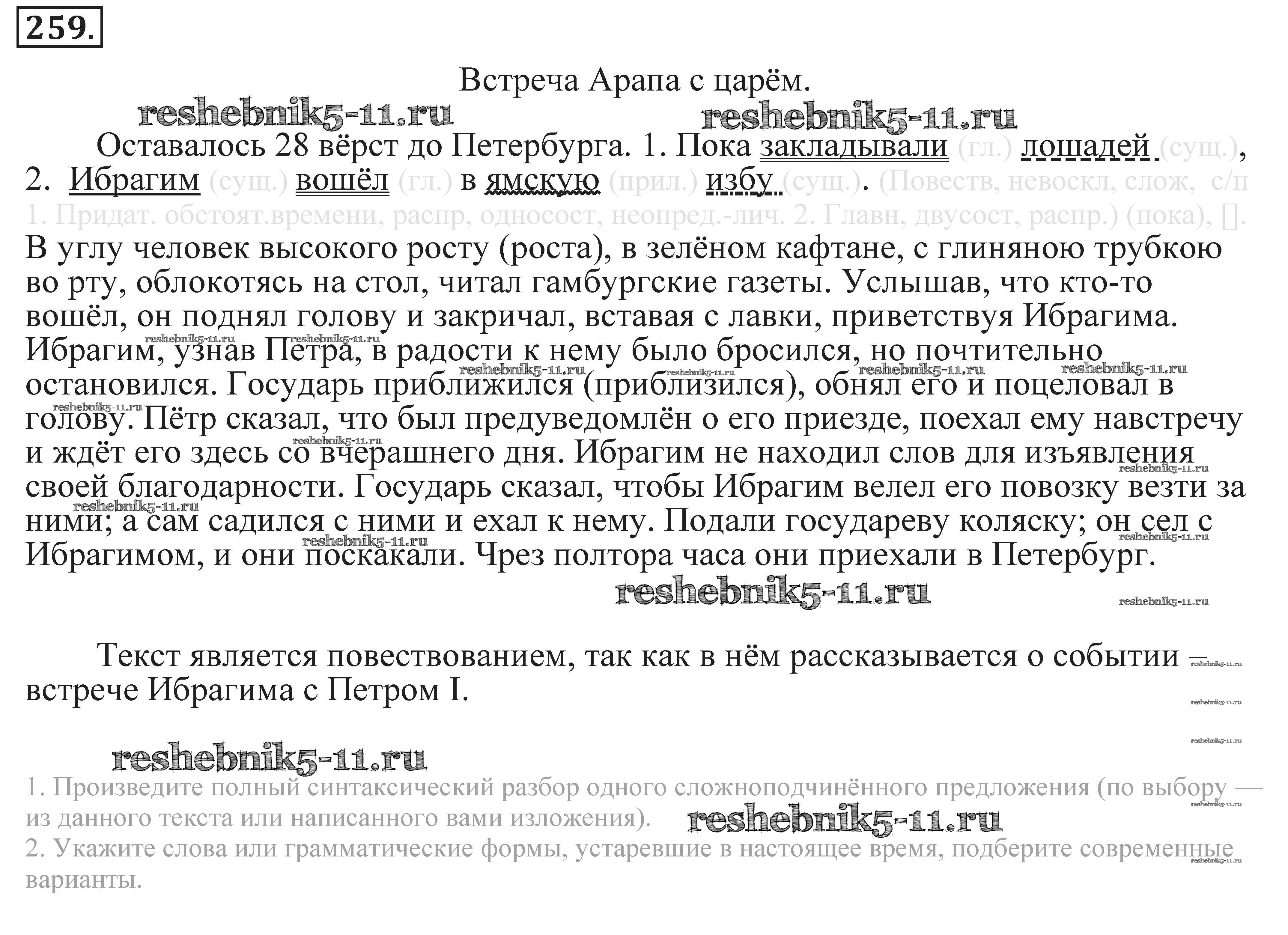 Готовая домашняя работа с ответами по Русскому языку за 9 класс Пичугов, Еремеева, Купалова Практика Просвещение 2022 - Упражнения 259