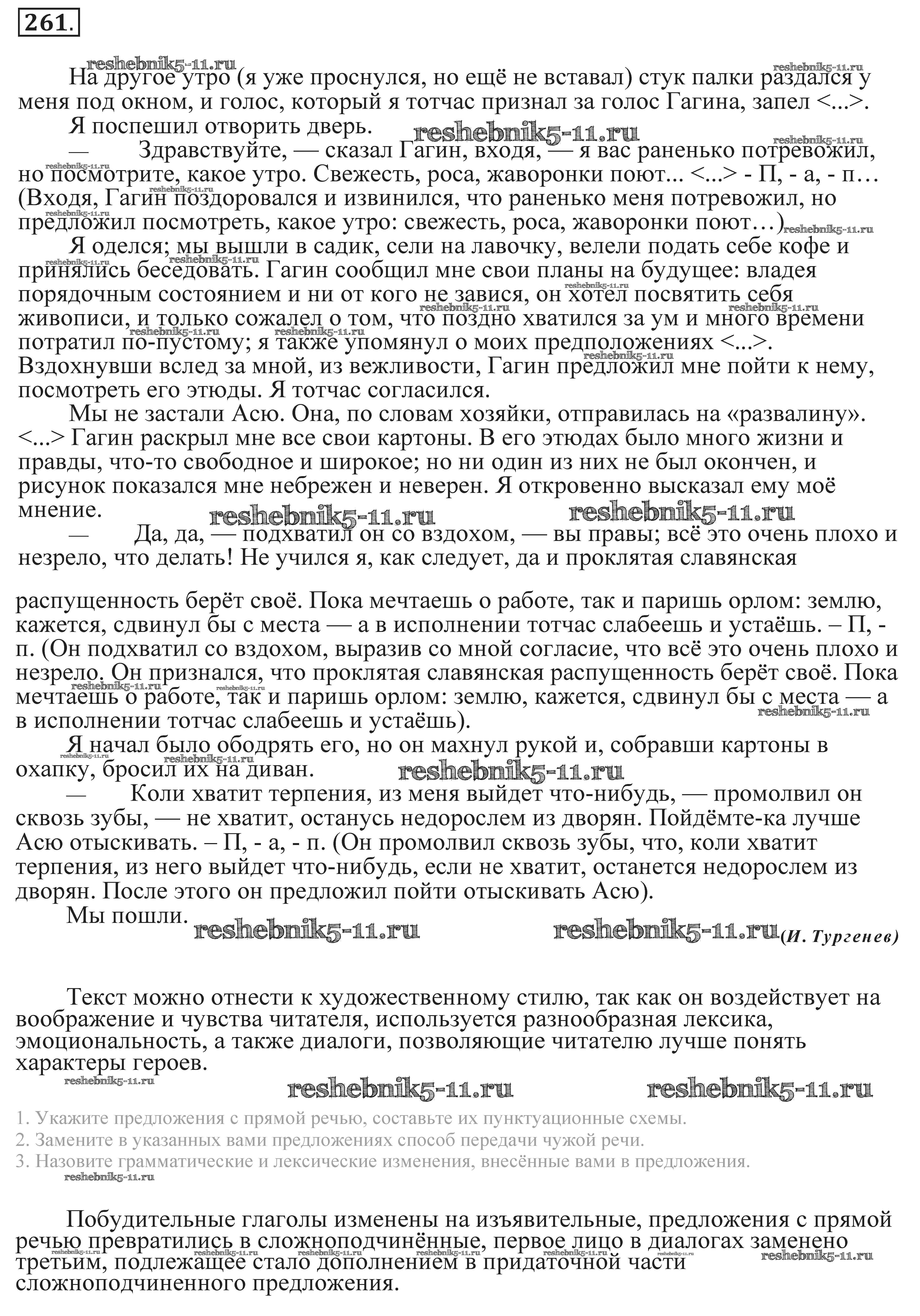 Готовая домашняя работа с ответами по Русскому языку за 9 класс Пичугов, Еремеева, Купалова Практика Просвещение 2022 - Упражнения 261