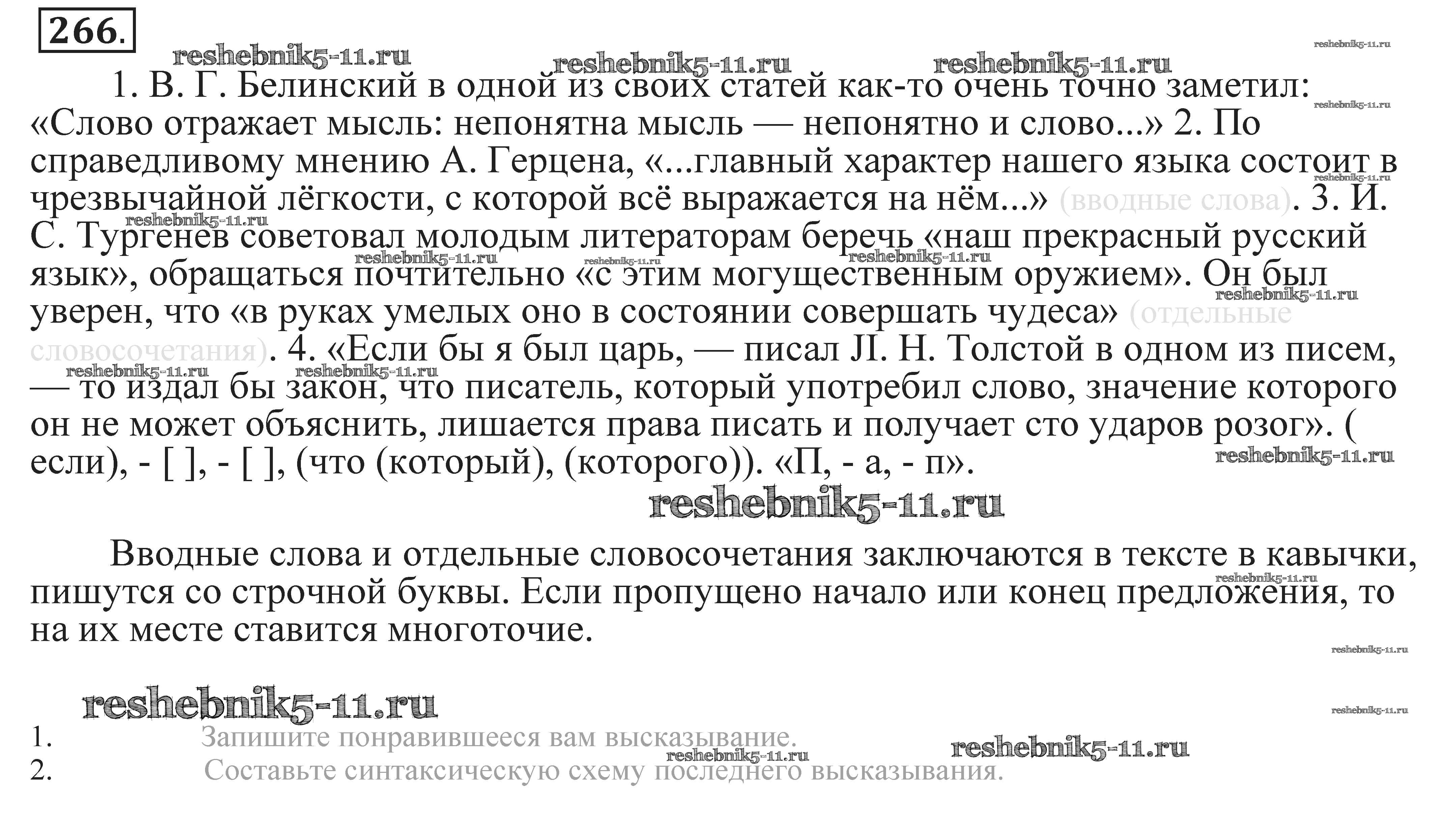 Готовая домашняя работа с ответами по Русскому языку за 9 класс Пичугов, Еремеева, Купалова Практика Просвещение 2022 - Упражнения 266